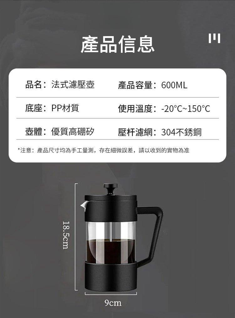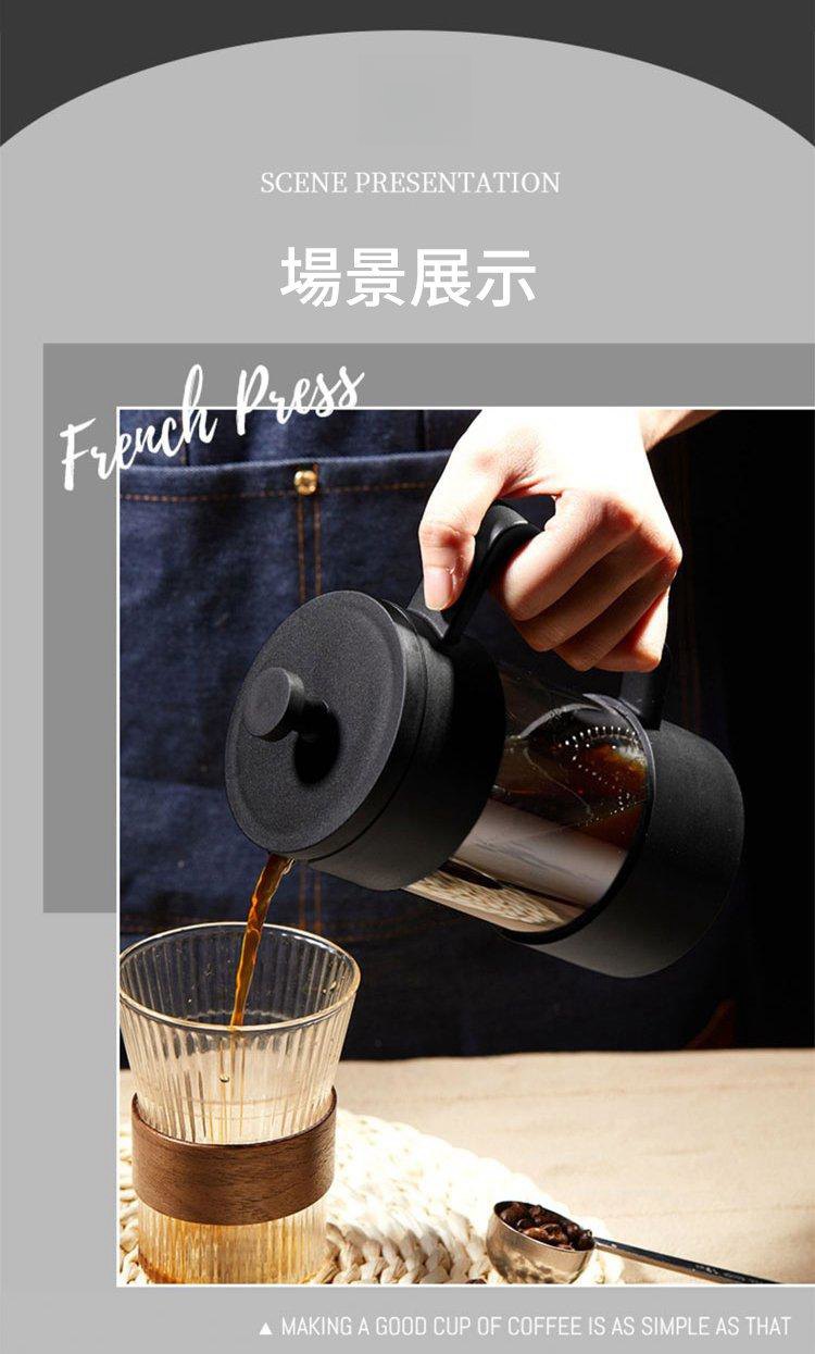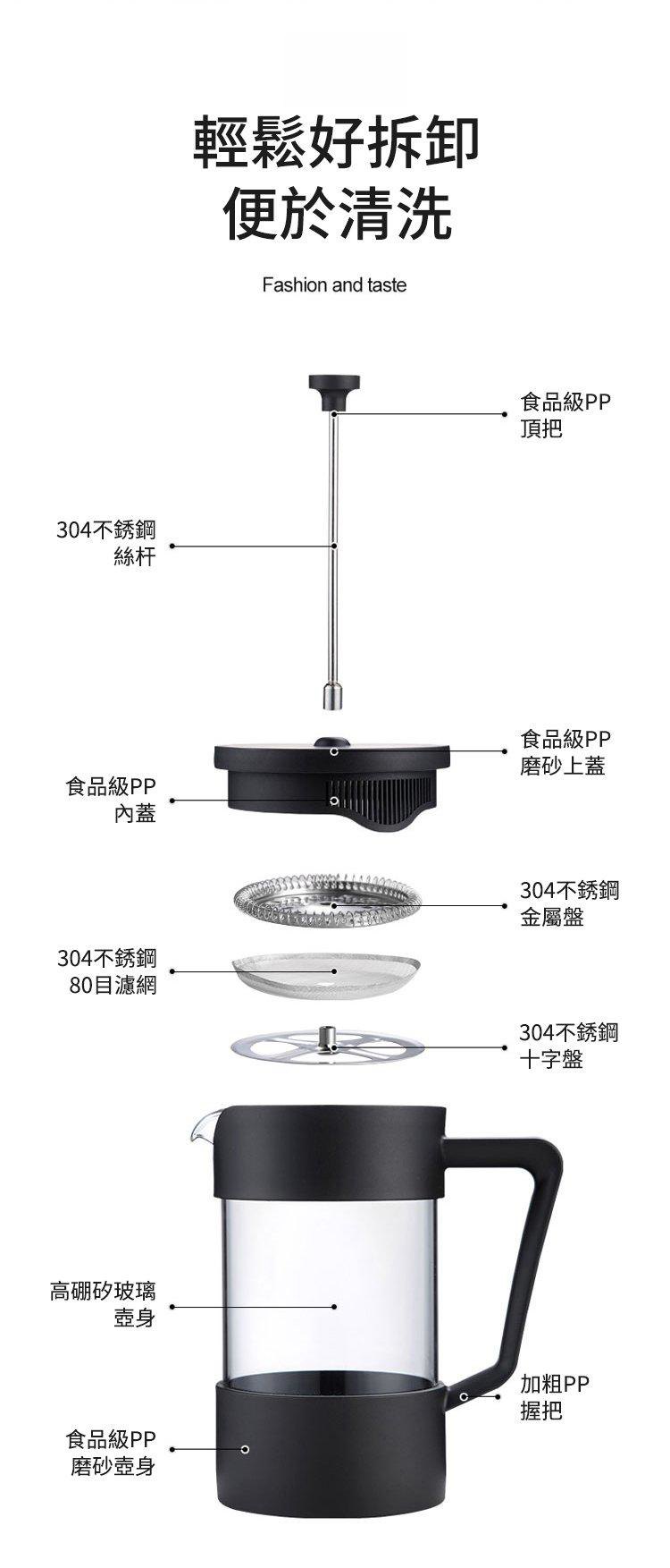 美式全功能法壓過濾壺 | 泡咖啡打牛奶泡花茶一壺多用 | 80目食品級不鏽鋼濾網 | FDA認證防爆高硼硅玻璃 | 美式香濃發芽咖啡牛奶法壓過濾壺