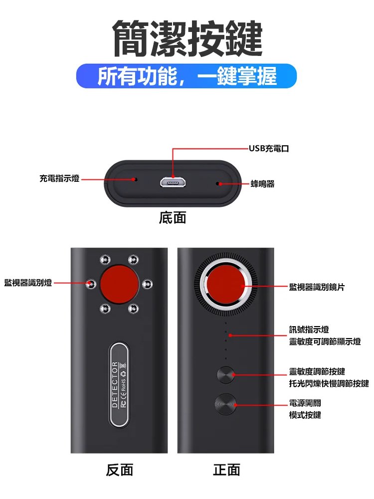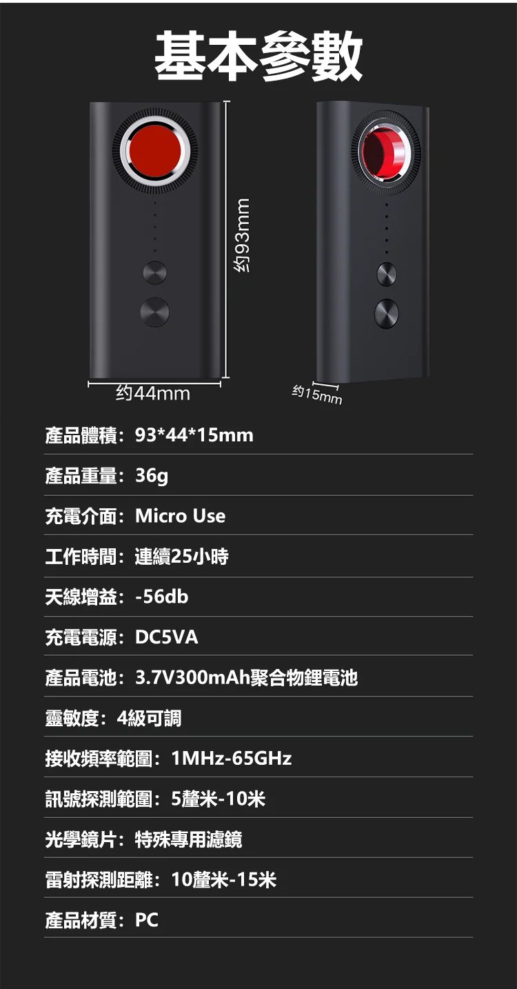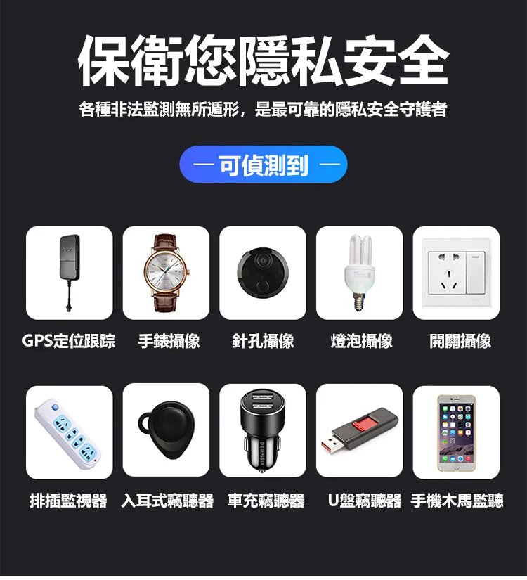 專業級防偷拍防竊聽防定位智慧探測儀 | 全功能攝像頭探測 | 高靈敏晶片精準掃描 | 全方位酒店辦公室汽車洗手間更衣室防偷拍攝像頭探測器