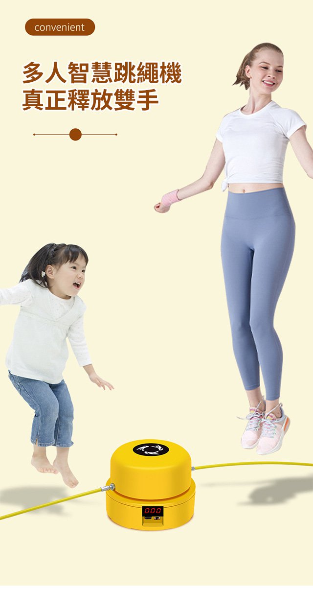 全功能免手持智慧無線跳繩機 | 人體工學甩繩 | 可多人同跳 | 一鍵遙控十檔調速 | 漸進式平緩變速 | AI智慧LCD計數 | 智慧兒童成人無線跳繩機