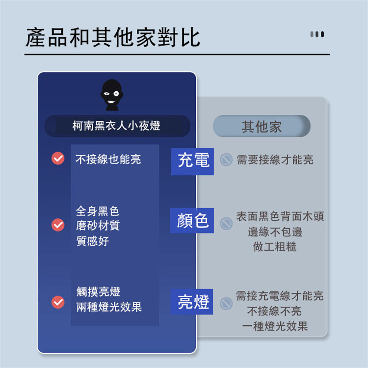 超好笑地獄禮物黑衣偵探小夜燈 | 暖白雙色溫柔伴睡 | 無線使用長續航 | 觸摸感應操作 | 搞笑送男女生地獄交換禮物黑衣人偵探小夜燈
