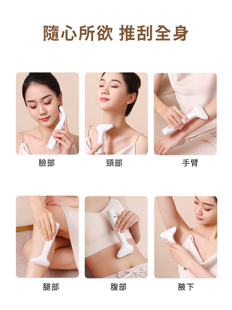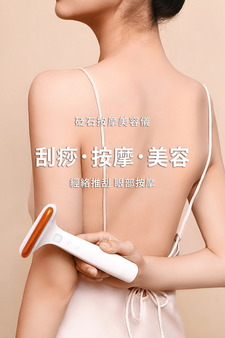 美容院線級全身刮痧震動按摩器 | 9檔恆溫加熱震動舒壓 | 雙頭砭石點面兼顧 | 經絡推刮眼部按摩 | 高級韓式天然泗濱砭石面部腋下腿部按摩器