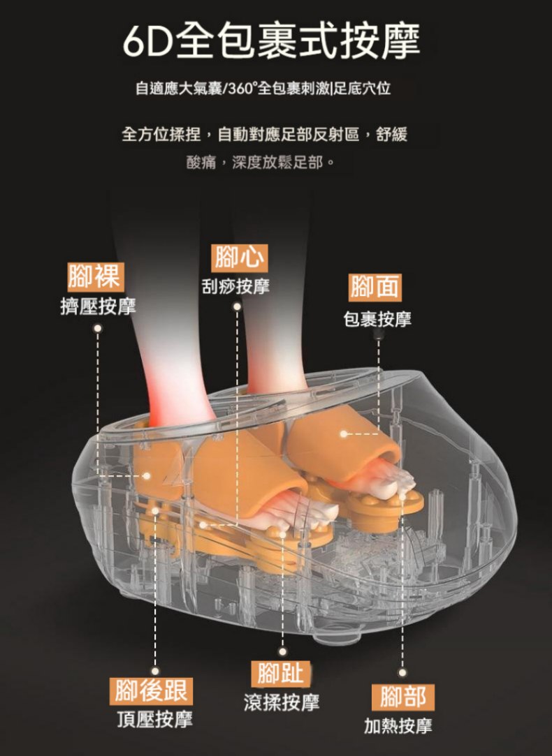 私家足部頭等艙 | 6D全包裹腳底按摩機 | 真人級五段泰式按摩 | 滾揉刮痧頂壓全功能 | 智慧溫控熱敷 | 包容全家腳碼 | 奢級SPA旗艦6D腳底按摩機