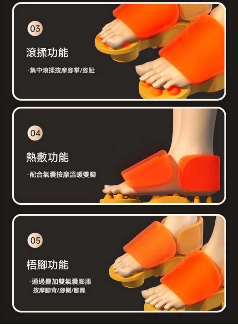 >> 6D全包裹式按摩,自適應大氣囊/ 360°全包裹刺激足底穴位,全方位揉捏