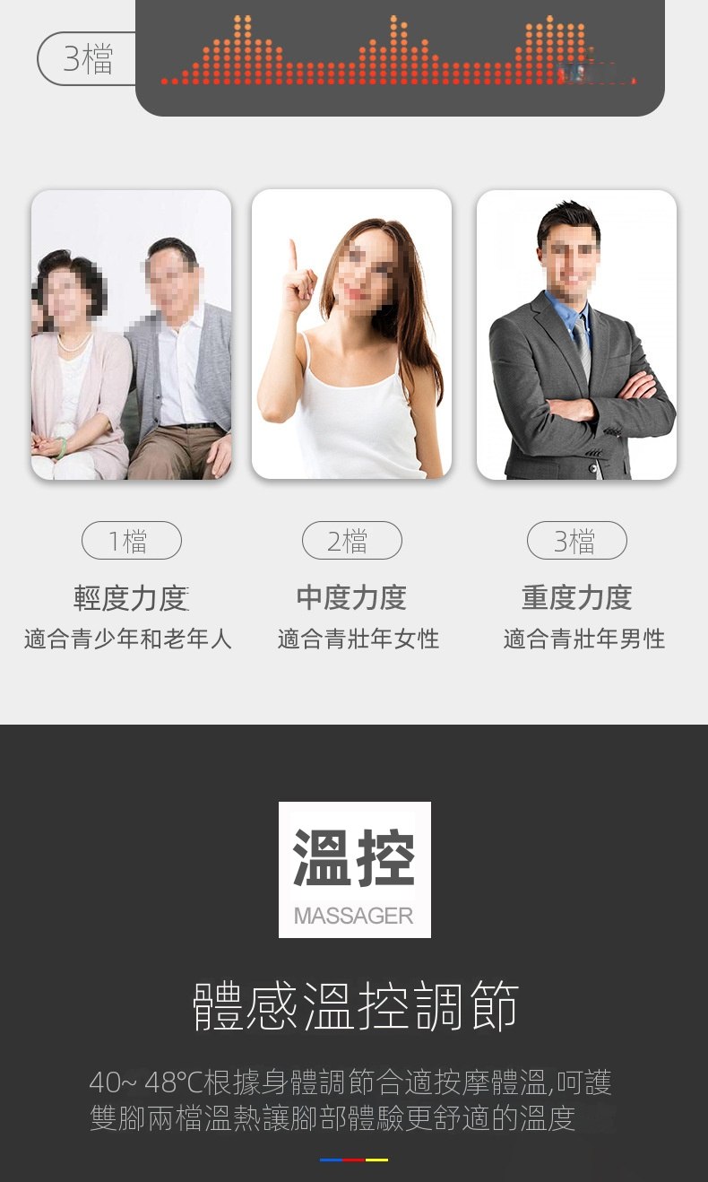 >> 三檔按摩力度,滿足全家不同的按摩要求