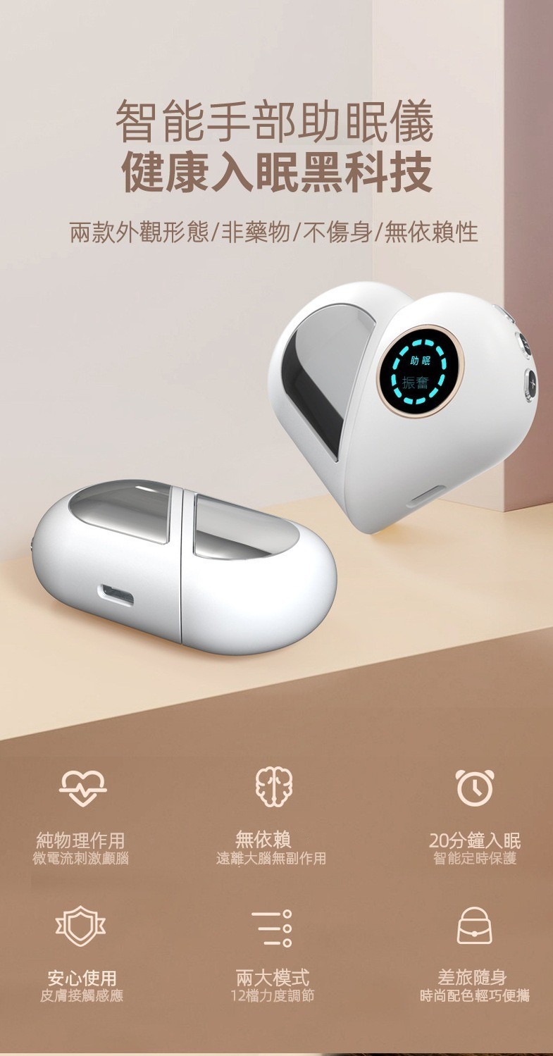 失眠神器智慧手握助眠儀 | CES微電舒緩放鬆 | 純物理作用無依賴| 20分鐘入眠定時 | 兩大模式12檔力度 | 暖心禮物健康入眠黑科技心型手握助眠儀