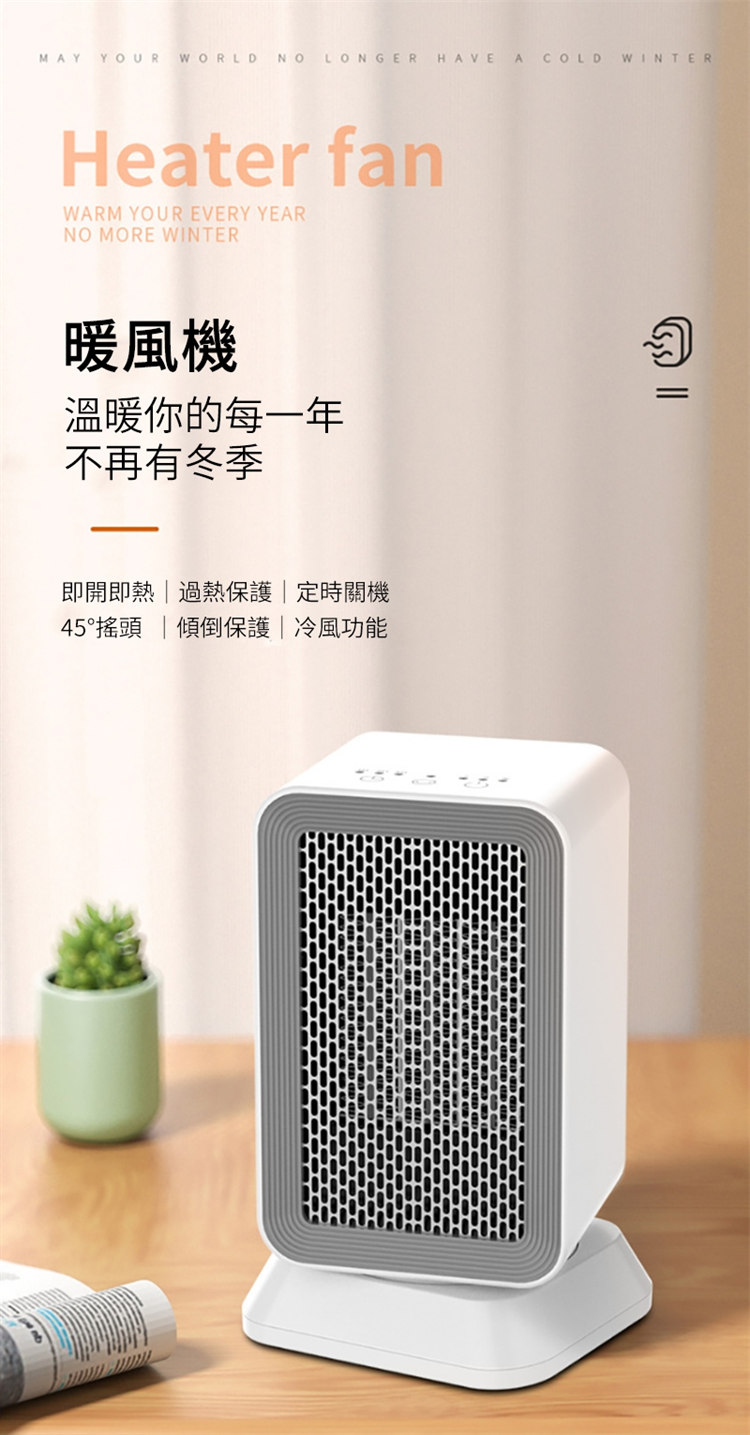 全功能冷熱兩用電暖器暖風機 | PTC陶瓷3秒速熱 | 冷熱雙模三檔調節 | 傾倒斷電安全保護 | 廣域搖頭送風 | 三段定時 | 智慧居家冬日神器暖爐暖風機