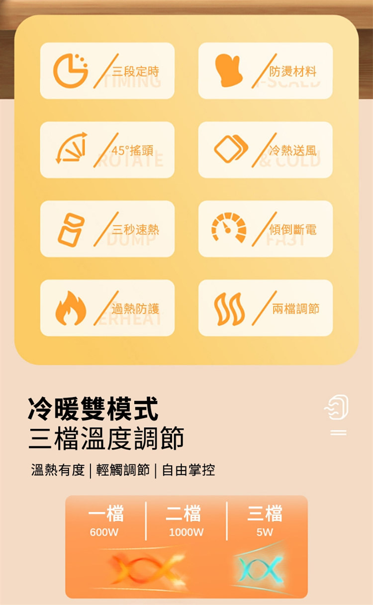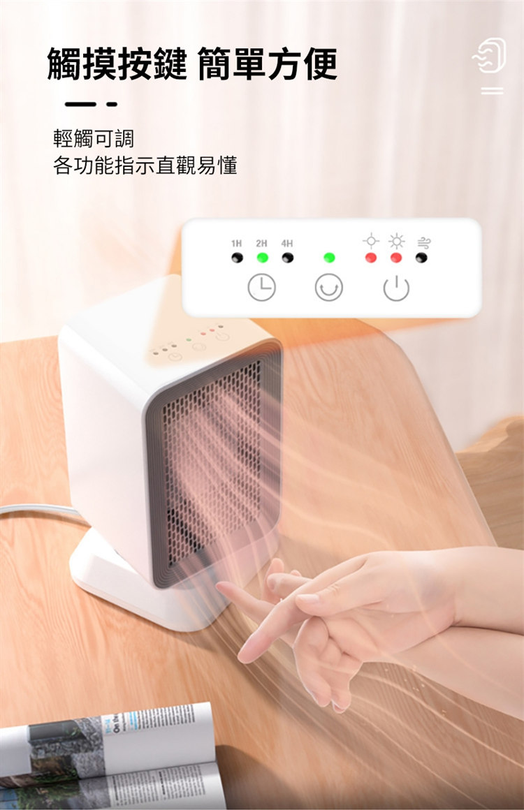 冷暖雙模式,三檔溫度,輕觸調節