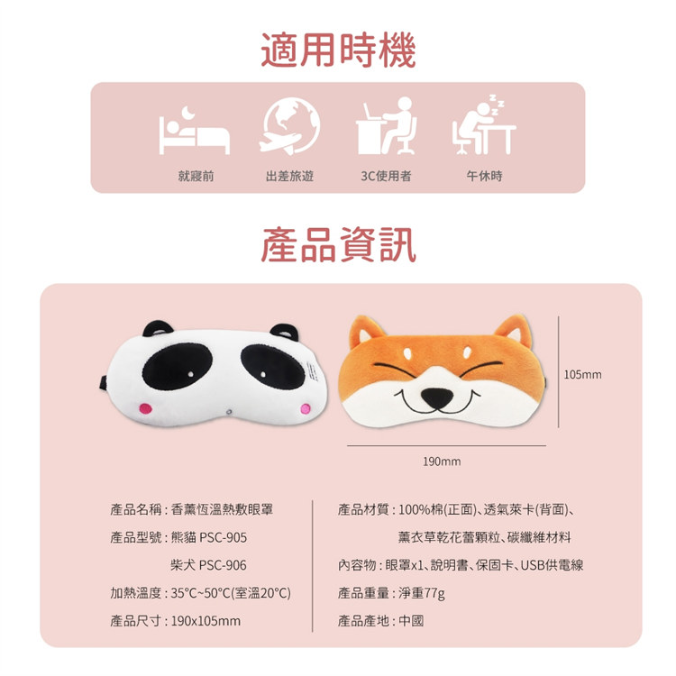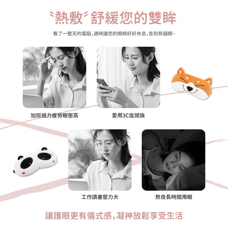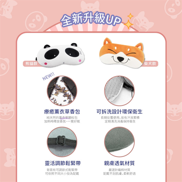 SPA級亮眸香氛熱敷眼罩 | 沉浸式眼部熱敷 | 療愈薰衣草香包 | 四檔恆溫定時 | USB方便供電 | 女生超愛生日聖誕禮物超萌柴犬龍貓造型舒緩放鬆眼罩