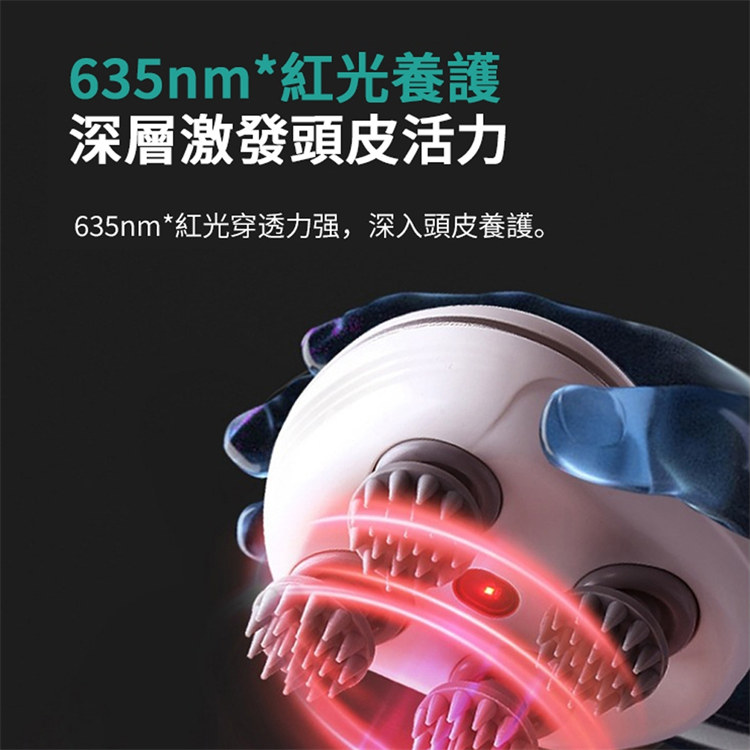 奢級SPA元氣舒爽頭部按摩儀 | 六大專業手法 | 三檔力度調節 | 635nm紅光養護 | IPX7防水乾濕兩用 | 雲感超柔矽膠 | 高級生日禮物減壓神器頭部按摩儀