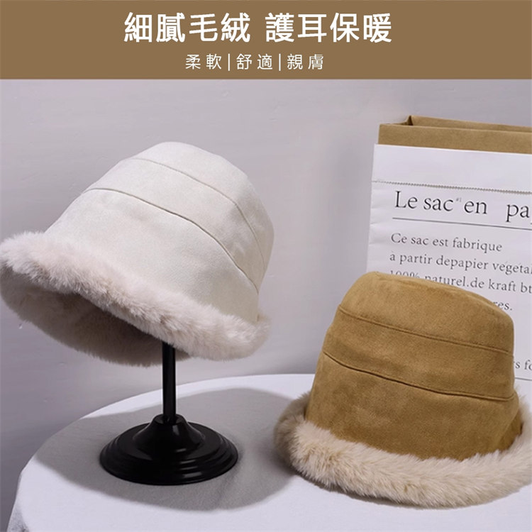 日式北海道風格毛絨漁夫帽 | 前長後短挺括帽型 | 加深設計顯臉小 | 軟糯羊羔絨內裡 | 可愛減齡百搭保暖親膚女生秋冬毛絨漁夫帽