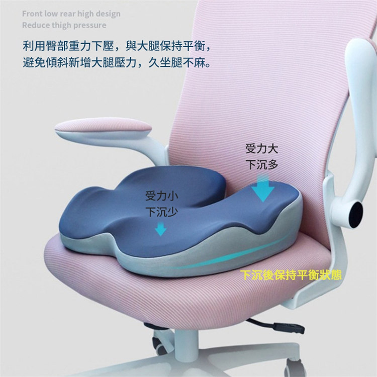 沉浸式久坐包裹式坐墊 | 大腿減壓久坐不麻 | 還原健康脊椎曲線 | 中空透氣不悶 | U型設計呵護尾骨 | 科技慢回彈記憶棉男女沉浸式久坐坐墊