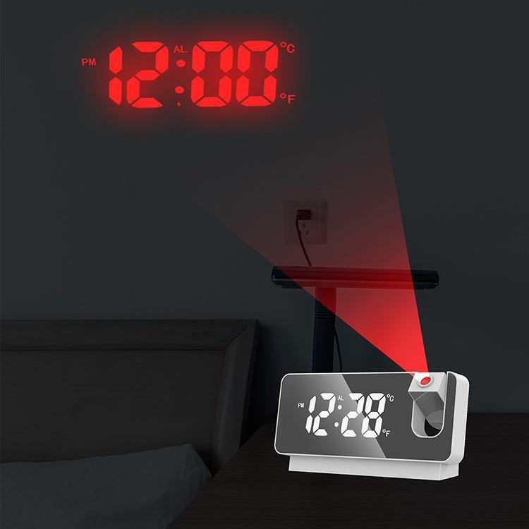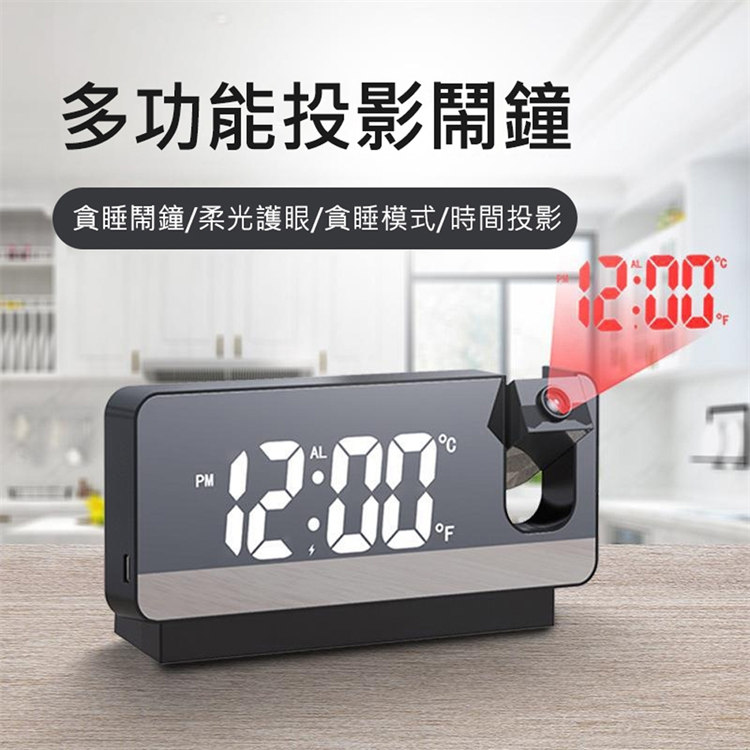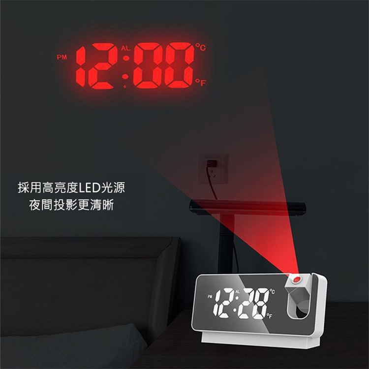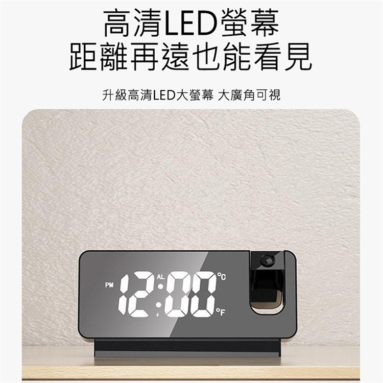 格調多功能大屏投影鬧鐘時鐘 | 高清LED投影時間 | 柔和漸強鬧鈴 | 實時溫度顯示 | 靜音無聲機芯 | 時間管家多功能美型高清LED鬧鐘時鐘
