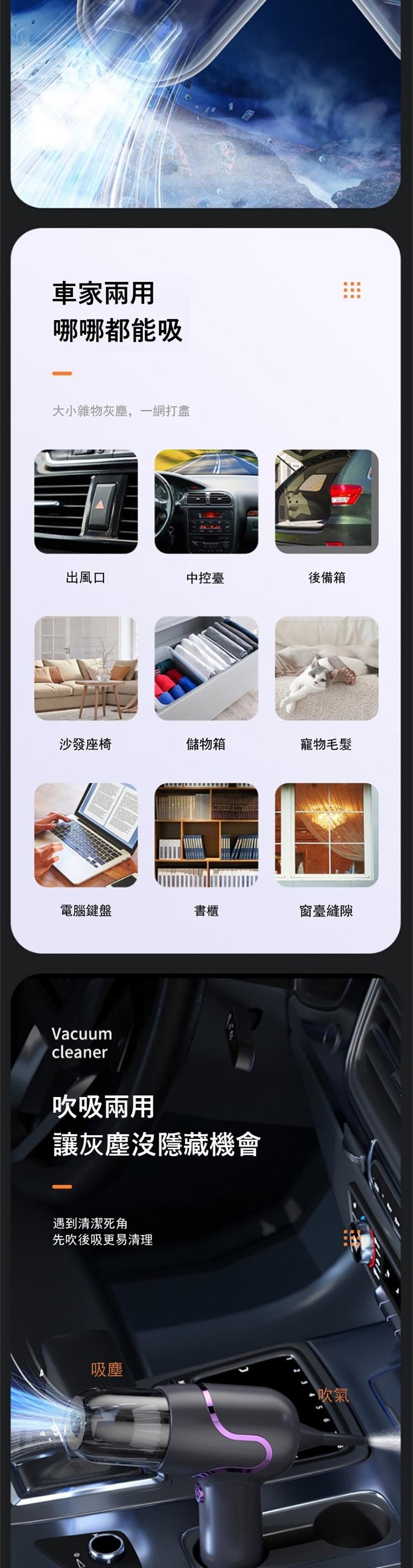 怪獸級吸吹兩用無線吸塵器 | 家車兩用手持不累 | 12000Pa颶風吸力 | 70分鐘超長續航 | 支援抽真空 | 附送多氣嘴車家兩用怪獸級無線吸塵器
