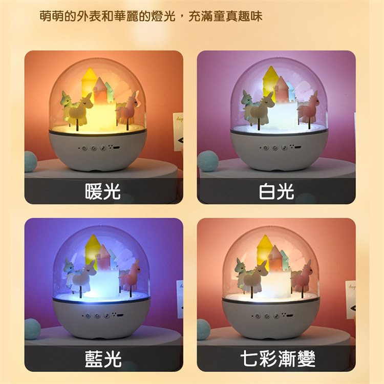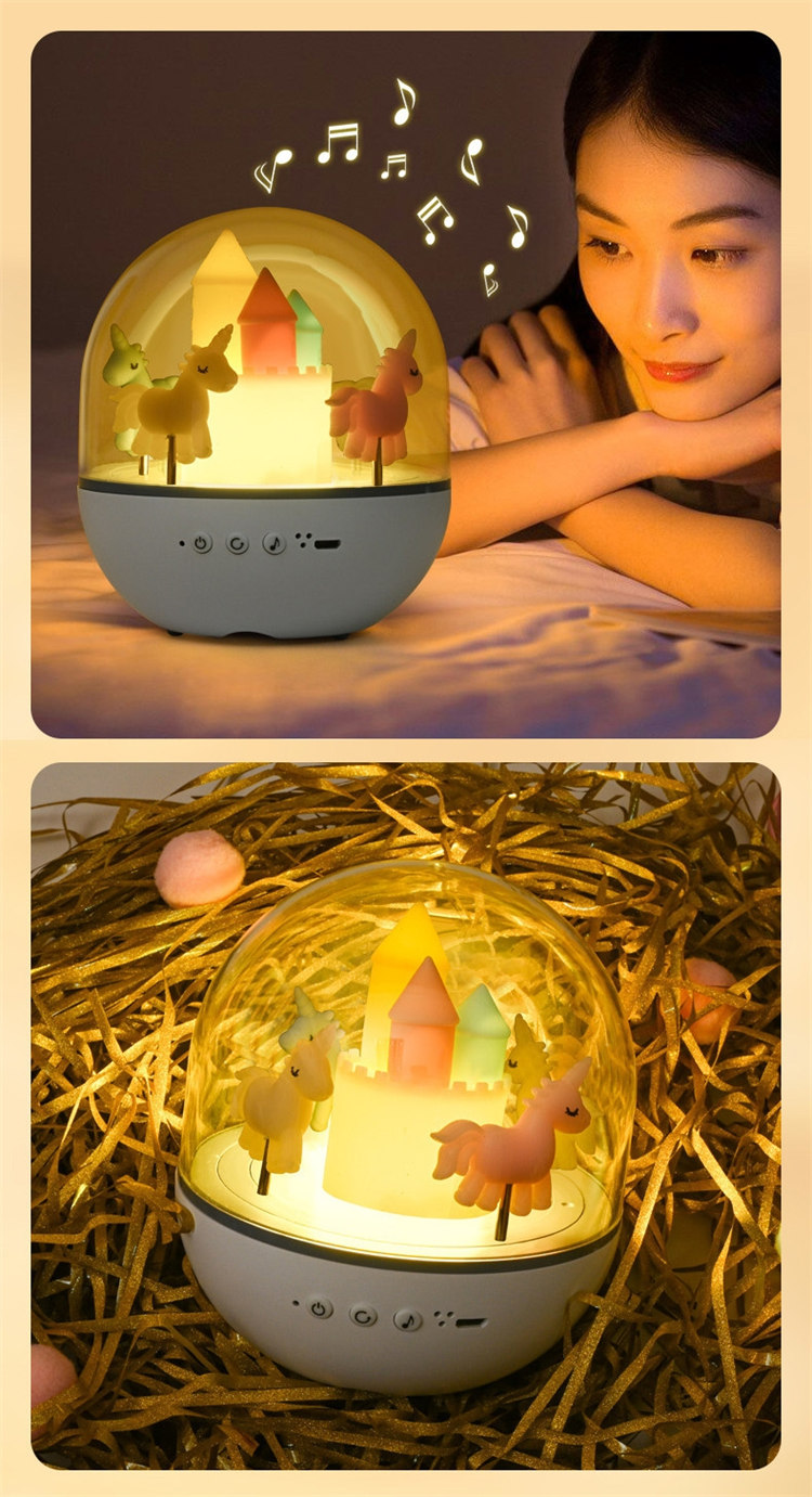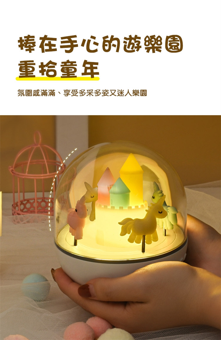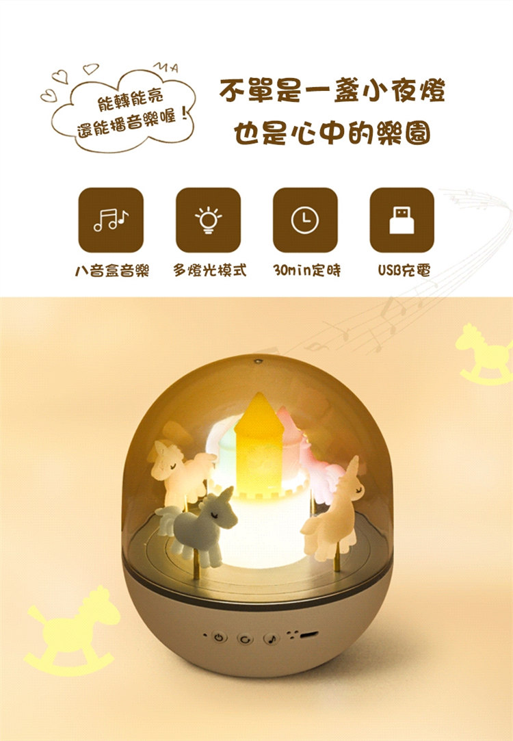 星光遊樂園音樂盒小夜燈 | 自動旋轉木馬 | 七彩漸變氣氛燈 | 無線遙控超方便 | 30min定時關機 | 自帶多首動聽曲目 | 少女心禮物旋轉木馬音樂盒夜燈