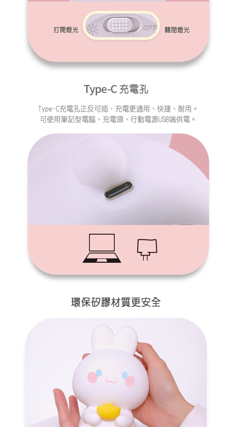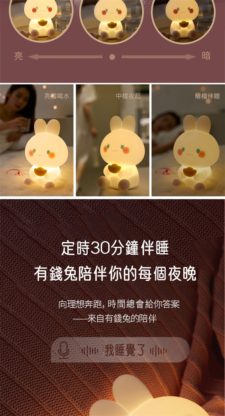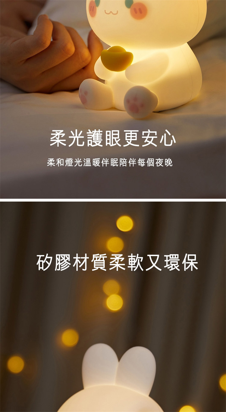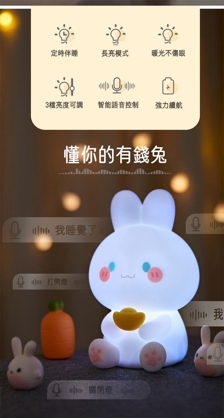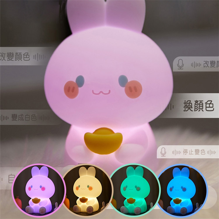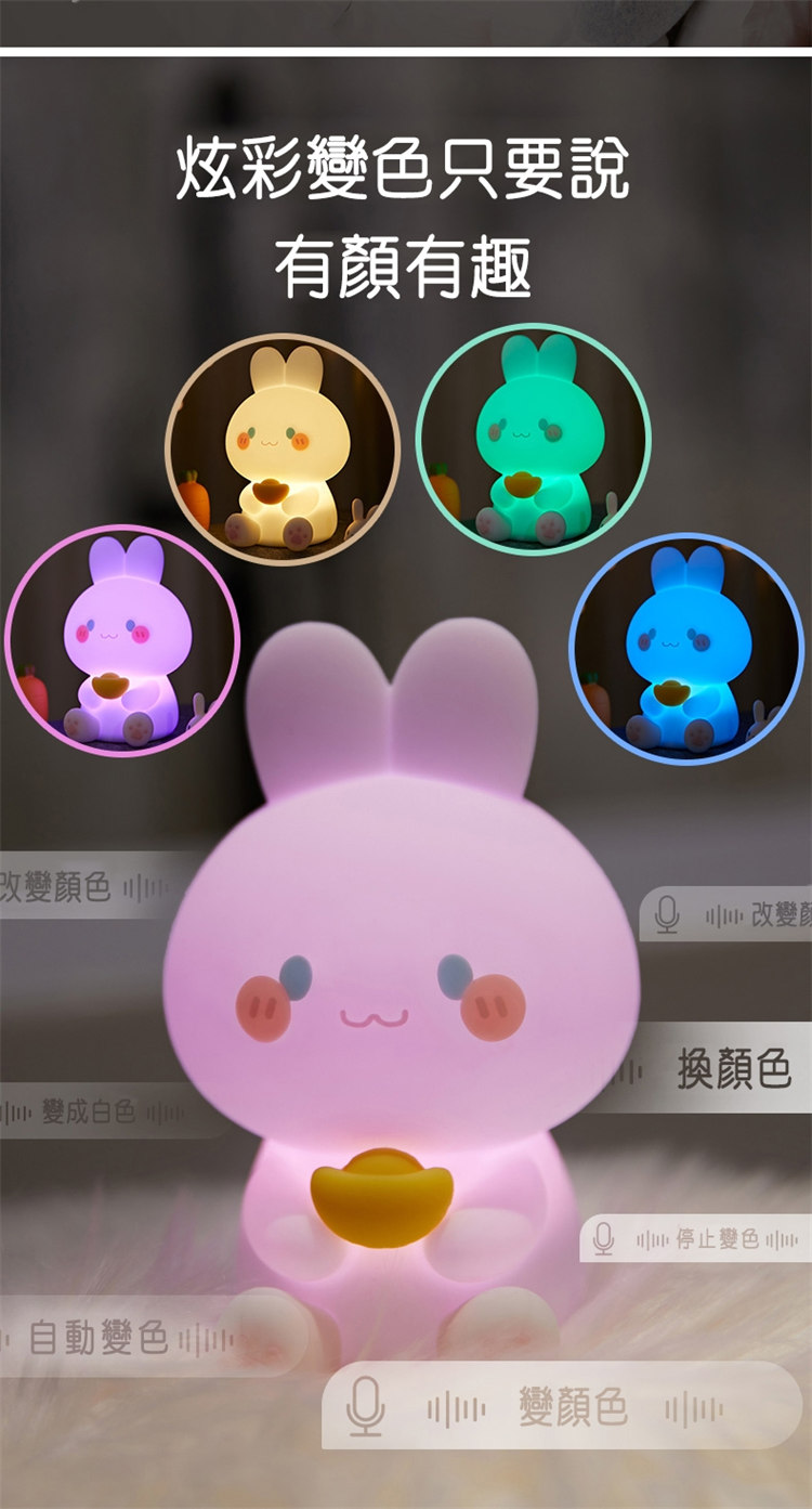 聽懂妳指令的兔兔晚安燈 | 智慧語音聲控 | 炫彩漸變氣氛光 | 三檔亮度可調 | 定時30分鐘伴睡 | 柔軟親膚環保矽膠 | 女生超愛生日禮物聲控小夜燈