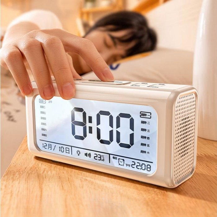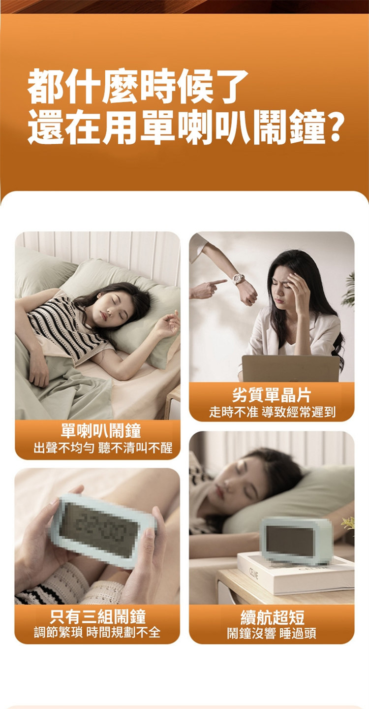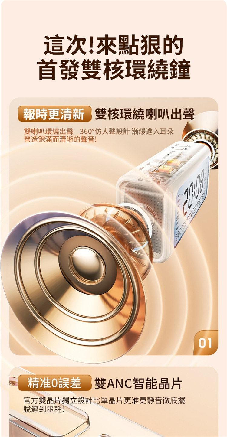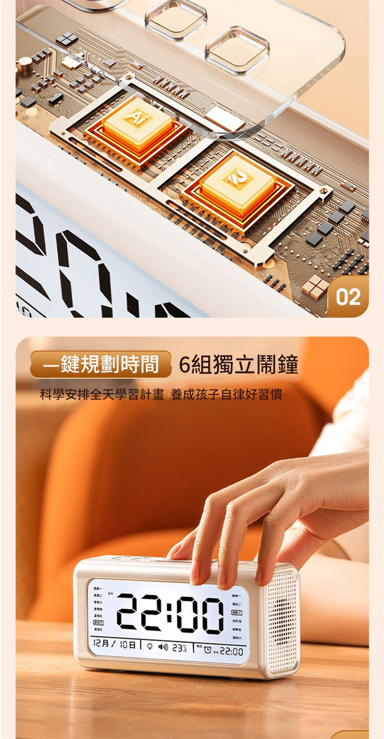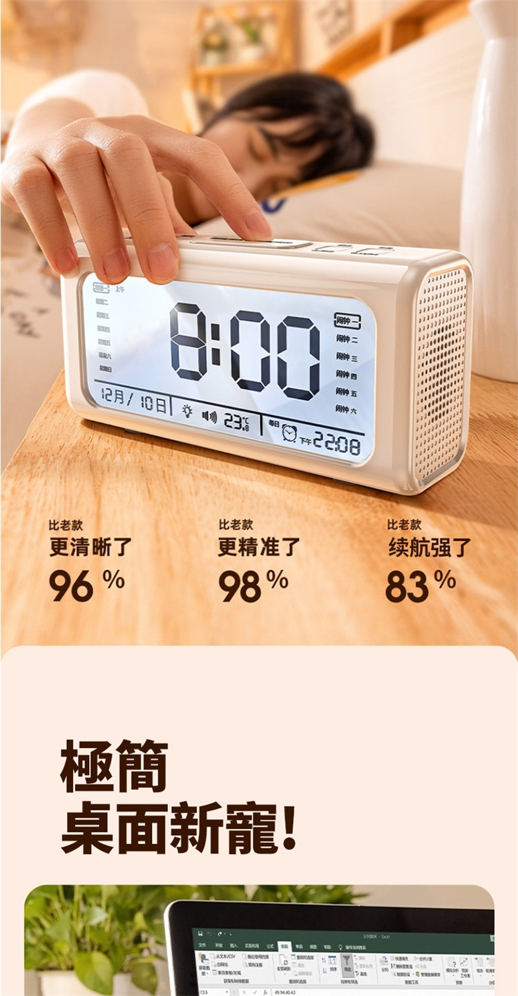航空級全功能雙核播報電子鬧鐘 | 雙喇叭人聲級播報 | 六組獨立鬧鐘 | 航母級續航 | 日曆星期溫度顯示 | 夜間一鍵亮屏 | 零誤差專業級電子時鐘鬧鐘
