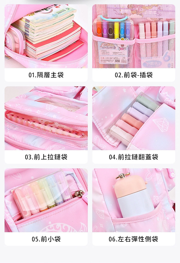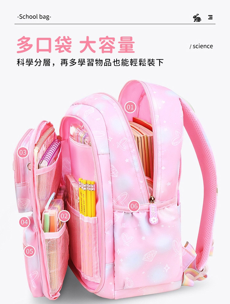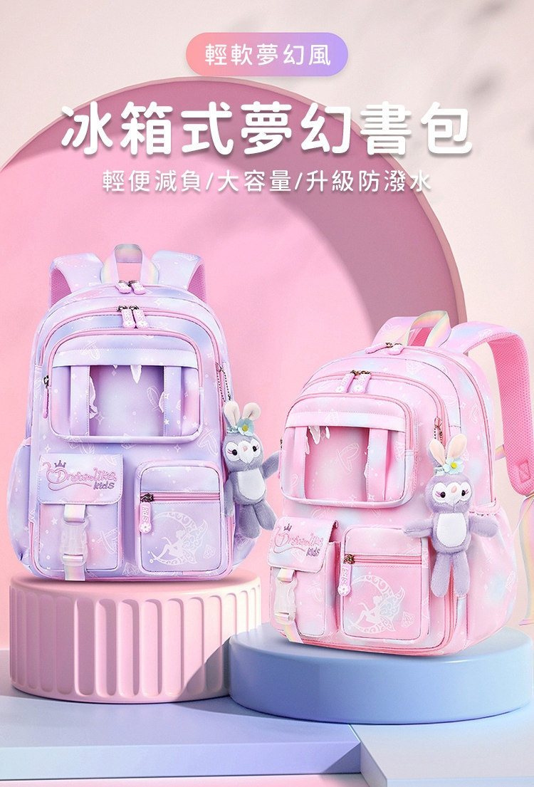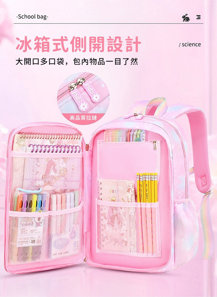 正韓設計冰箱式減壓書包後背包 | 人體工學科學減壓 | 冰箱式側開設計 | 多口袋大容量收納 | 貼心安全反光條 | 防潑水設計高級兒童小學書包後背包