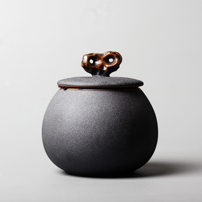 【石生花】中消耗汝窯陶瓷手作日式手繪密封茶葉罐