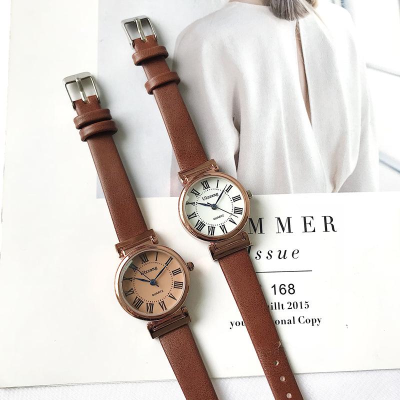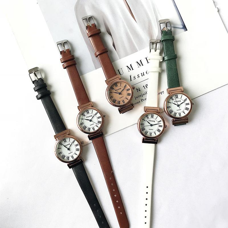 歐式羅馬刻錄氣質玫金色小錶盤細皮帶手錶女錶