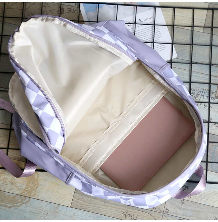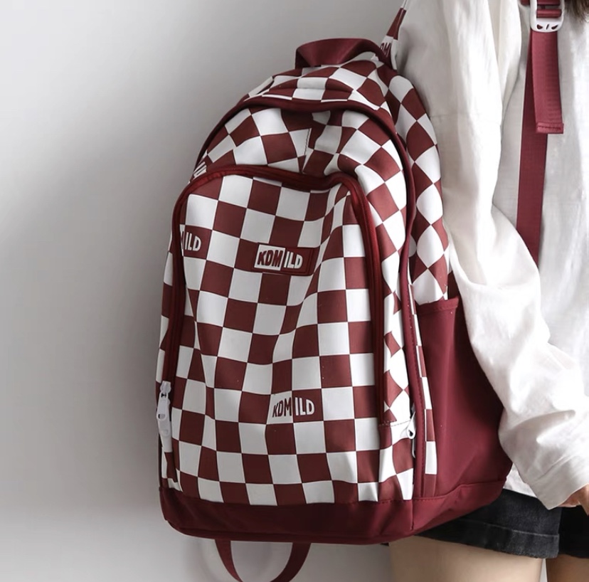 IG網紅輕便大容量棋盤格雙肩包女新款書包男女大學雙肩後背包
