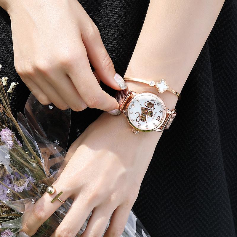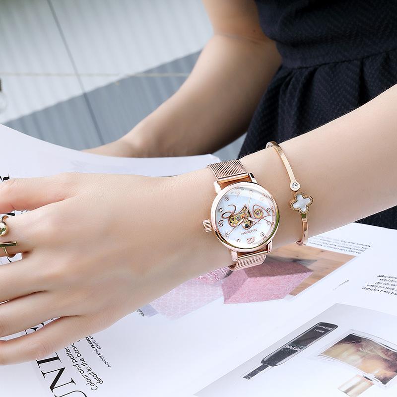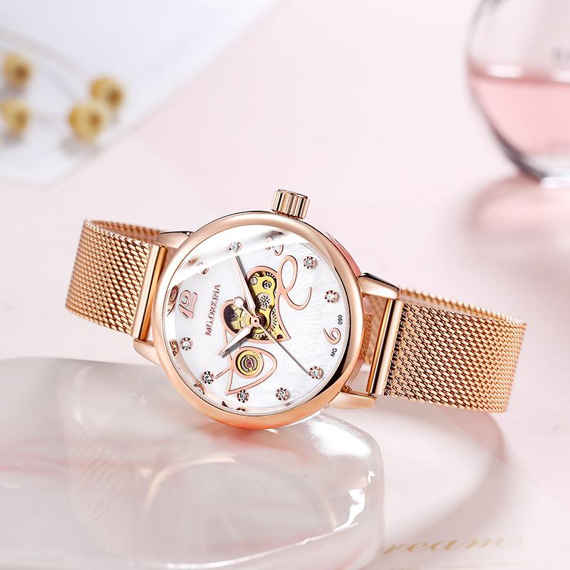 【全自動機械機芯】【米蘭尼斯網帶】MG.ORKINA高檔全自動機芯尼斯網帶鏤空錶盤防水手錶OL小資女錶