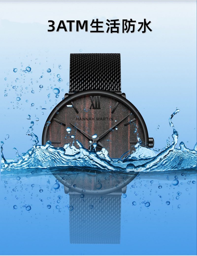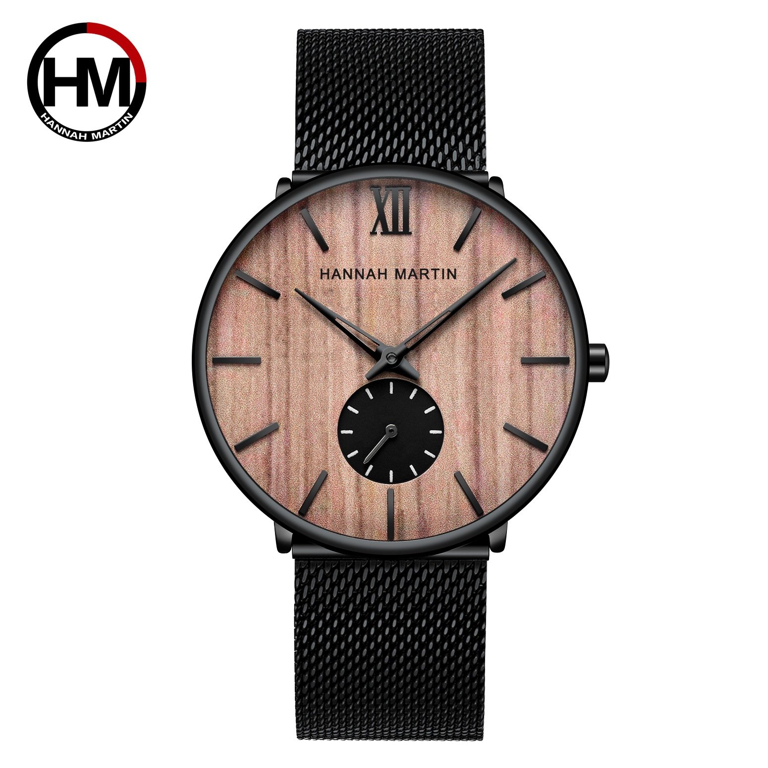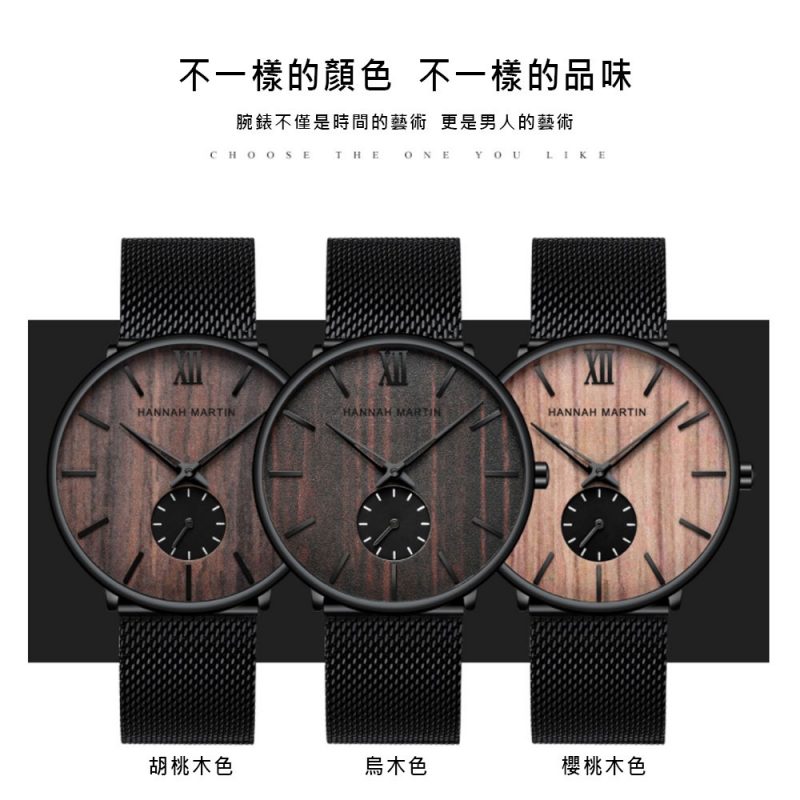 高檔胡桃木錶盤 | 米蘭尼斯網帶 | 獨立小秒盤 | 3ATM防水 | 高檔日本機芯 | HANNAH MARTIN儒雅氣質小三針商務休閒石英男錶