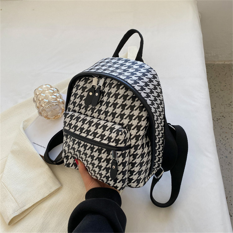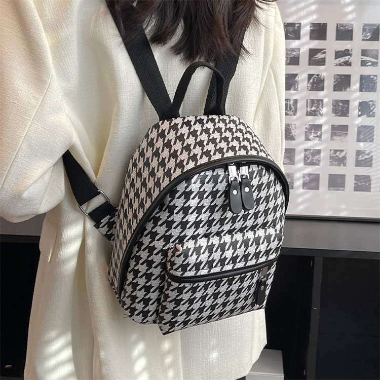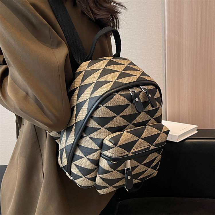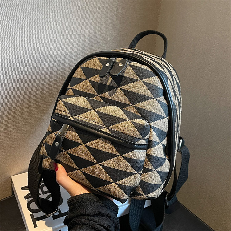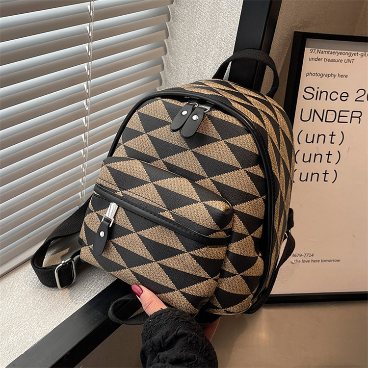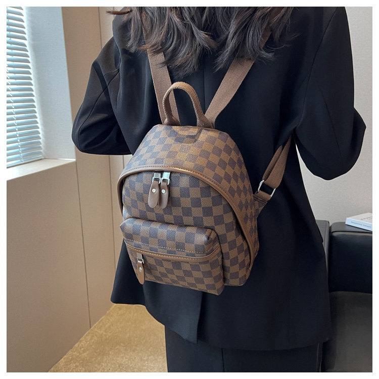 印花時尚背包超火雙肩包女新款春夏複古休閑通勤格子旅行小後背包