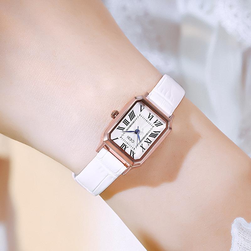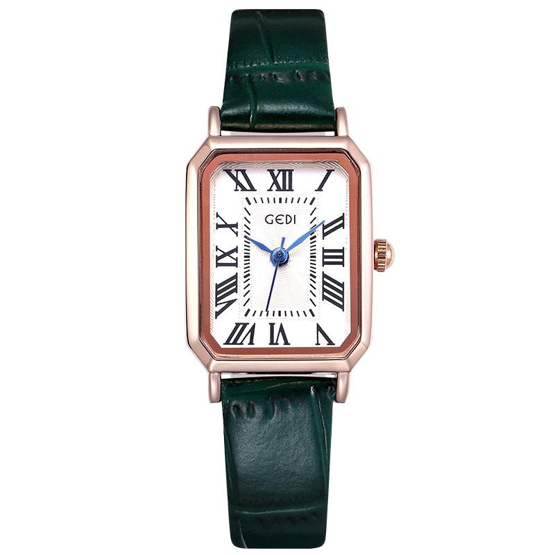 GEDI意大利設計復古羅馬刻度方形錶盤真皮錶帶氣質女手錶