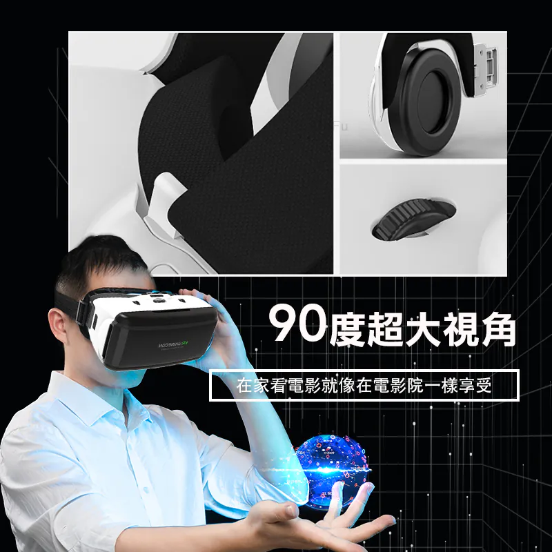 奢級旗艦虛擬實境藍芽VR眼鏡 | 私人影院級3D視聽體驗 | 自帶耳機手柄套組 | 巨幕寬屏視野 | 360度環繞耳機 | 雙獨立調整鏡片 | 無線藍芽手柄遙控