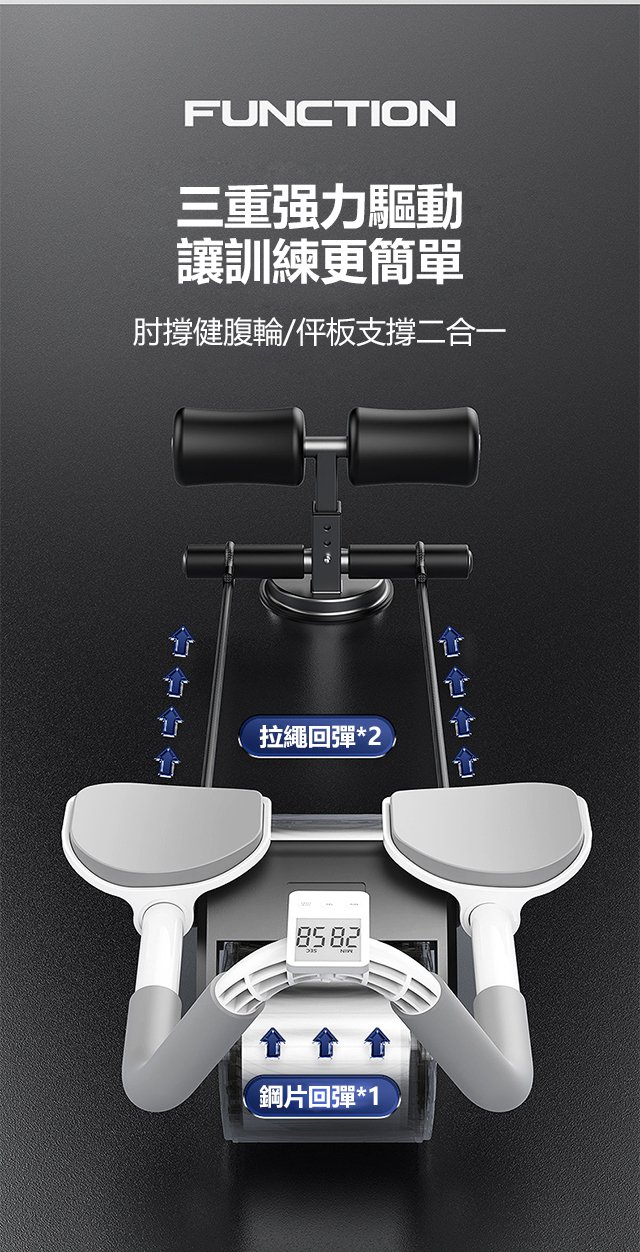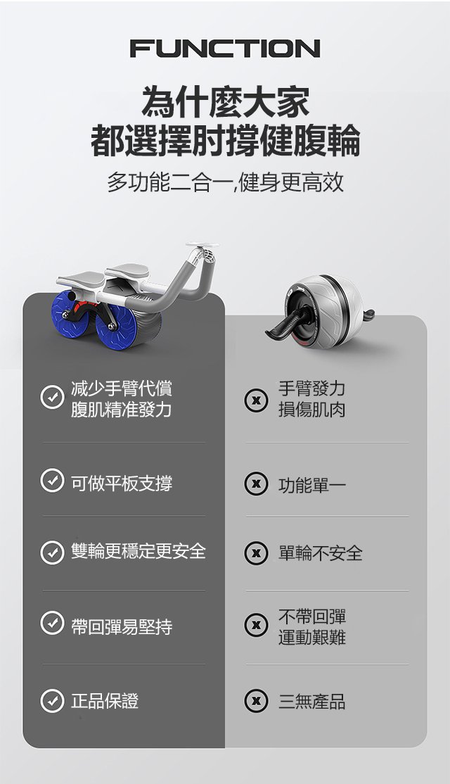 新手友好全肌群訓練肘撐健腹輪 | 靜音順滑自動回彈 | 內置剎車更安全 | 五層防滑不傷地板 | 高效健身自動回彈男女多功能健腹輪