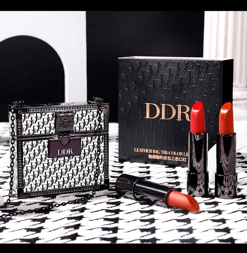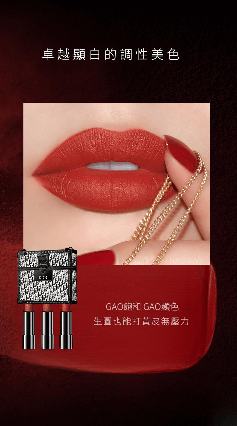 高定級魅惑釉彩三色皮包口紅 | 霧面啞光天鵝絨觸感 | 絲滑輕薄不粘膩 | 溫柔高級顯白富馥郁飽滿皮革紋理爛番茄/小辣椒/正紅三色女士口紅
