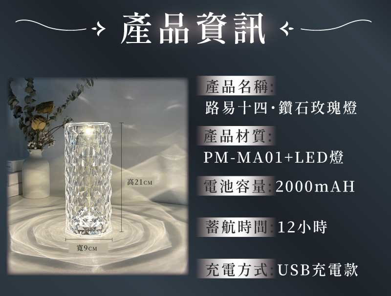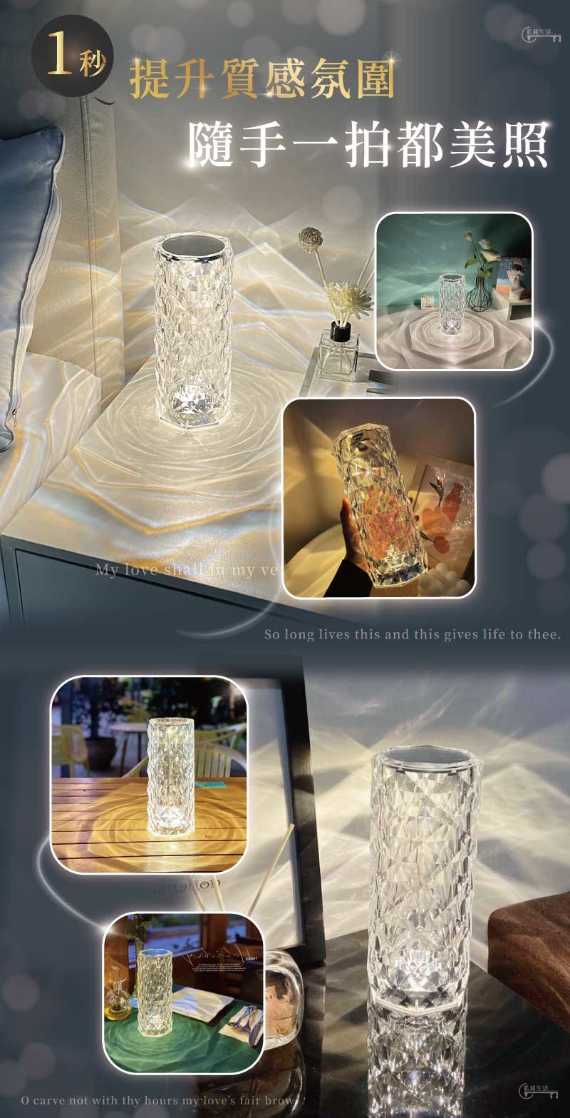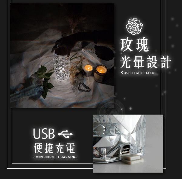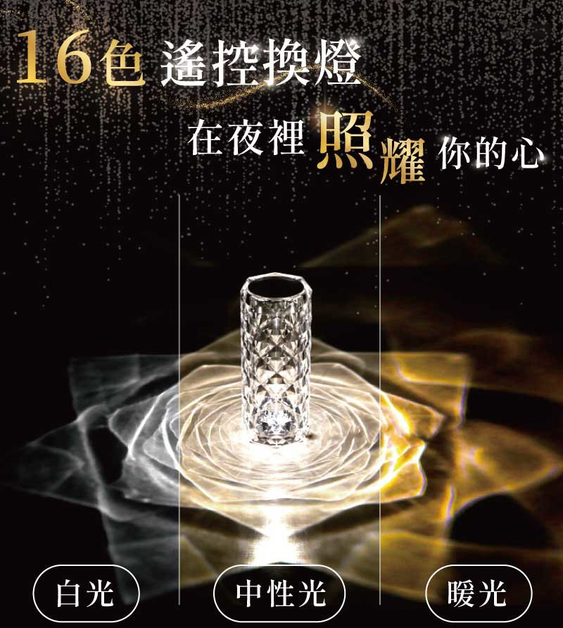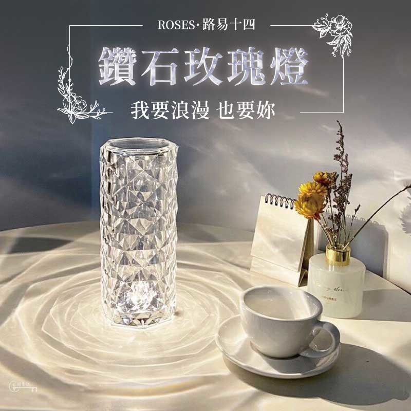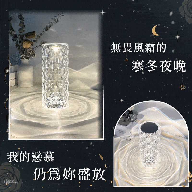 法式白玫瑰鑽石小夜燈 | 浪漫玫瑰光暈 | 16色幻彩燈效 | 漸變呼吸動態韻律 | 觸控明暗調節 | 12小時長效續航 | 收到超感動浪漫禮物法式鑽燈