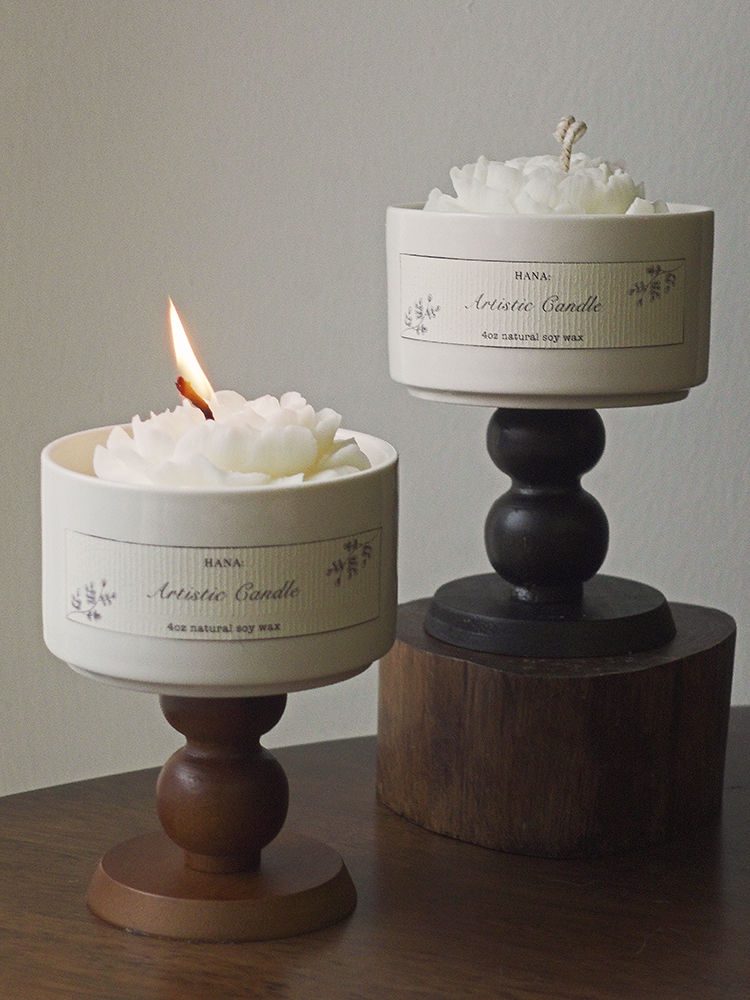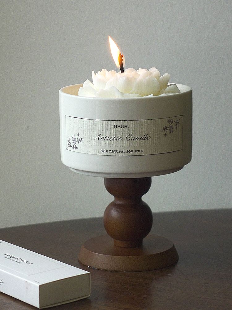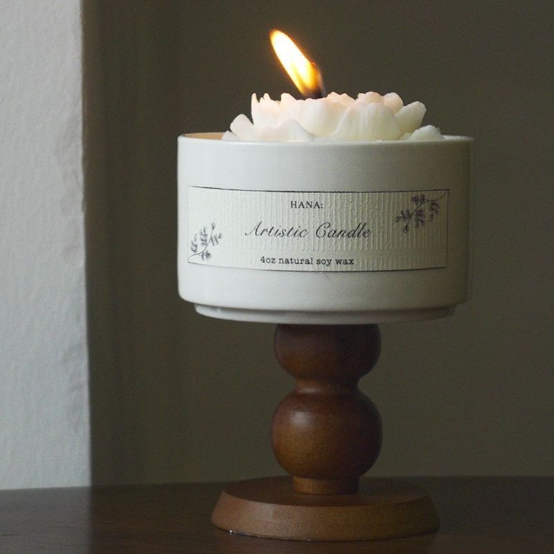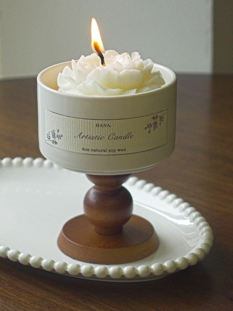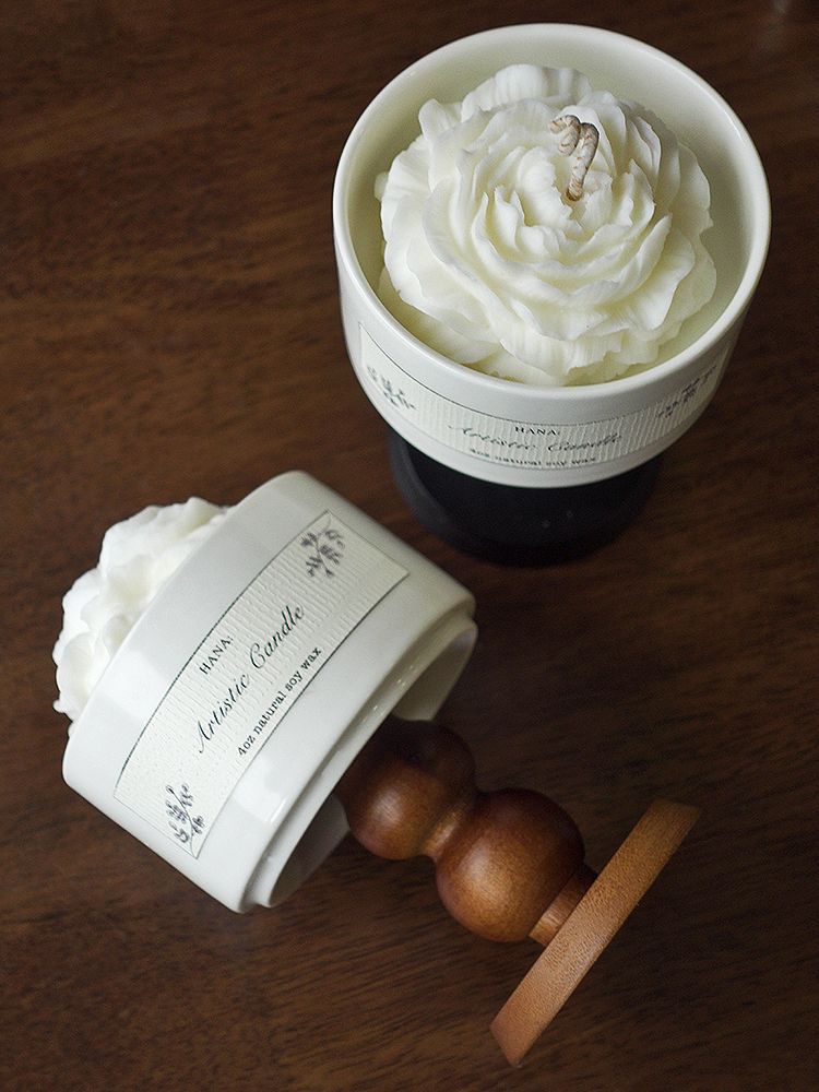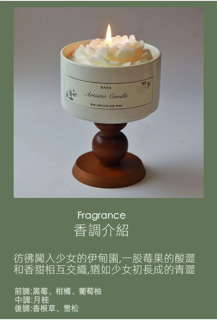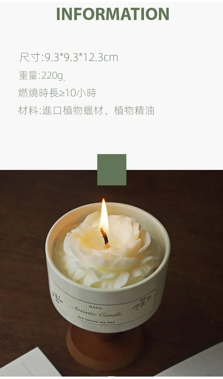 伊甸幽香法式香氛蠟燭陶瓷杯 | 藝術大師精雕山茶花 | 天然精油植物蠟材 | 高檔實木杯托 | 高級格調送女生禮物山茶花造型陶瓷杯精油香氛蠟燭