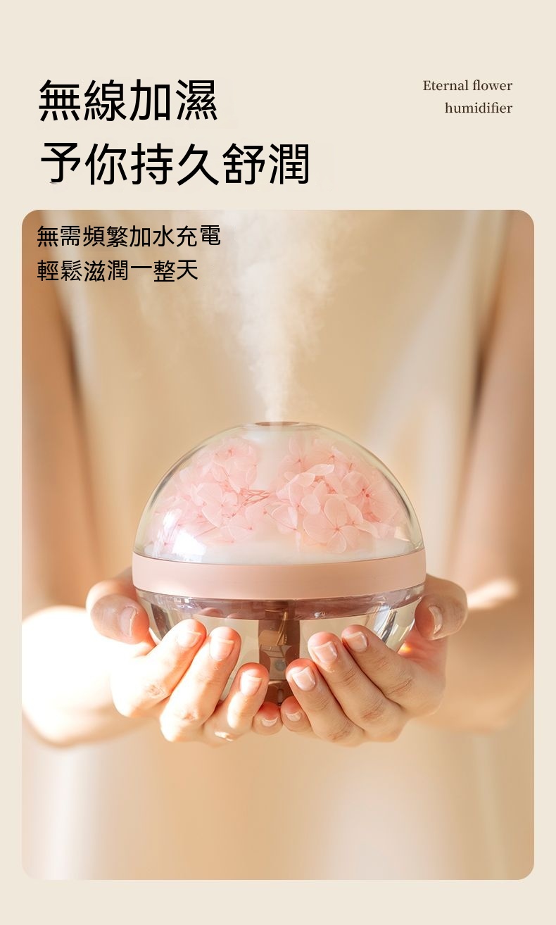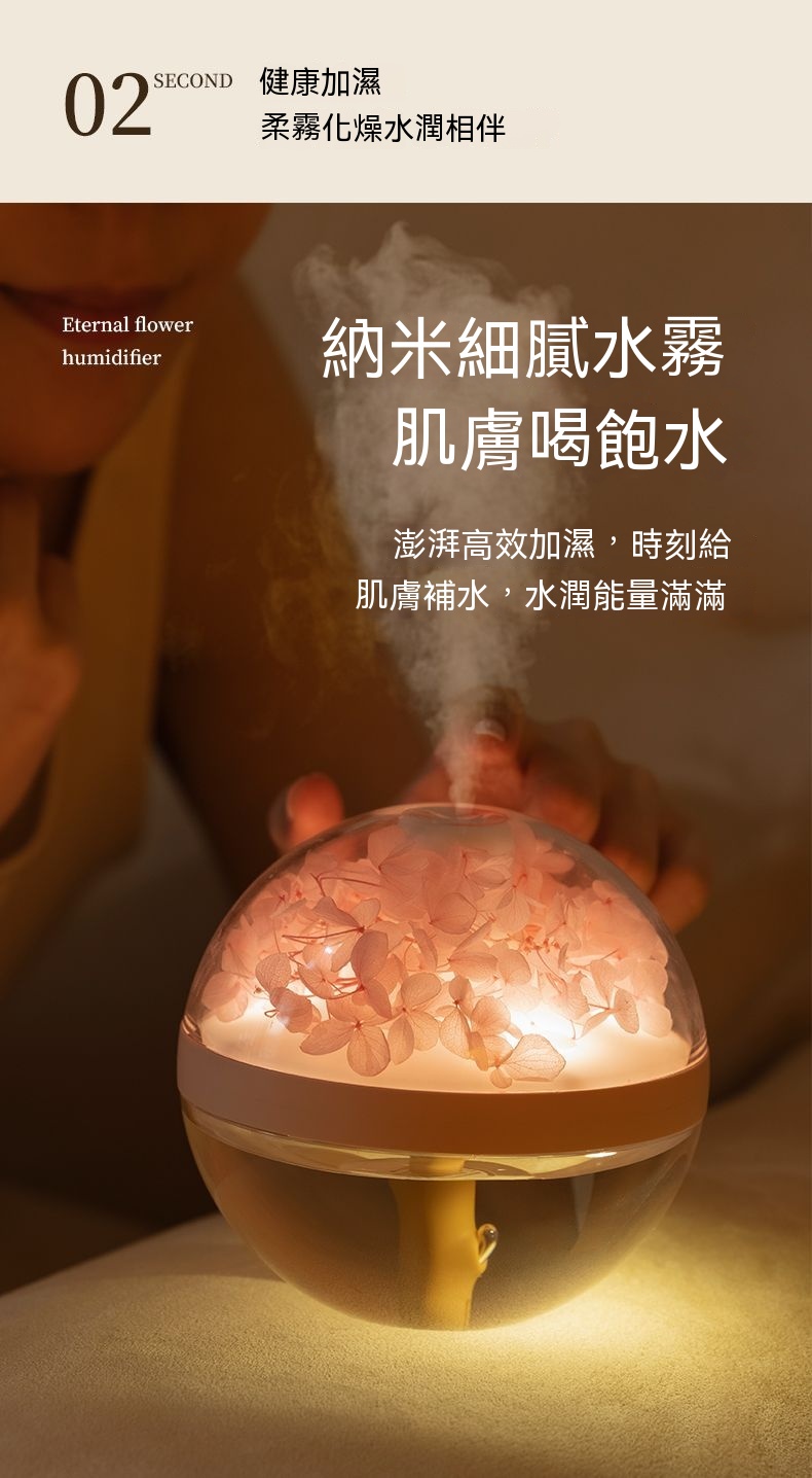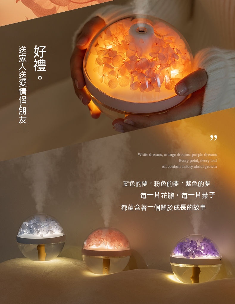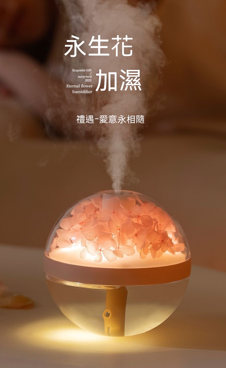 永生繡球花加濕器水氧機 | 奈米細膩水霧肌膚喝飽水 | 氣氛伴睡夜燈 | A級品質手工永生花 | 浪漫送女生禮物實用生日交換禮物永生花加濕器