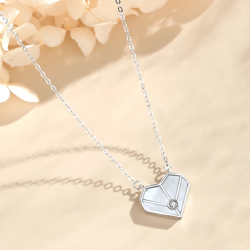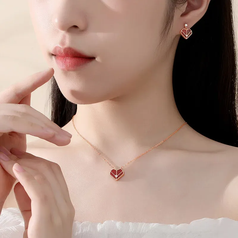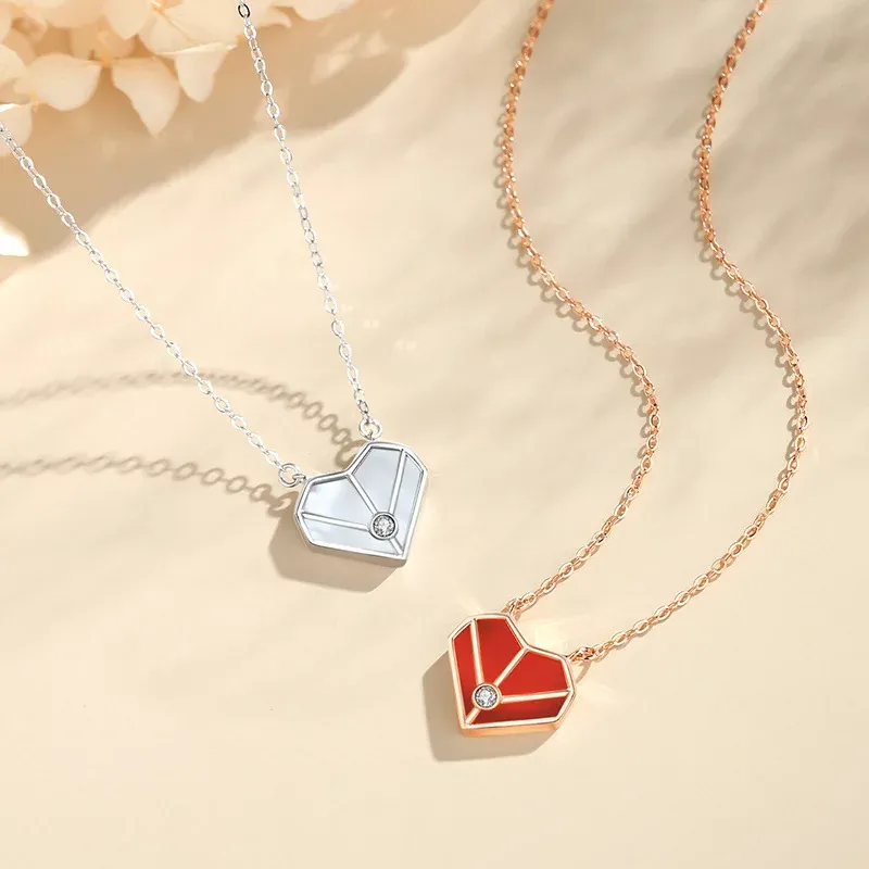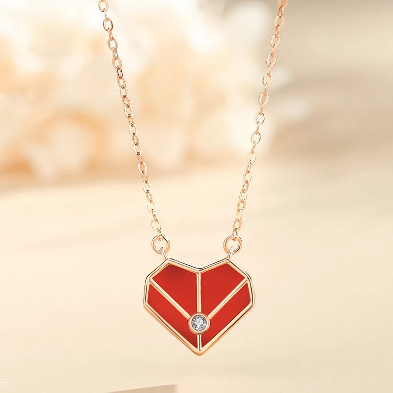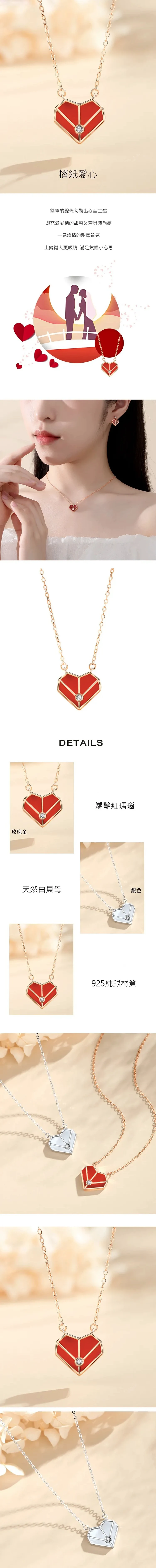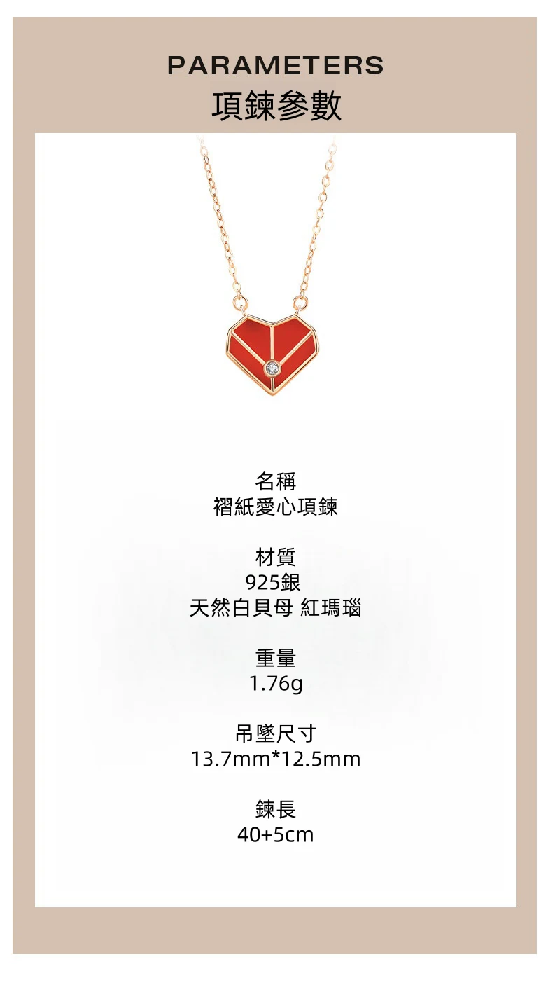 褶疊愛心 | S925純銀 | 天然紅瑪瑙 | 手工精緻拋光 | 簡約高級送女生禮物小紅心鎖骨鍊女生項鍊