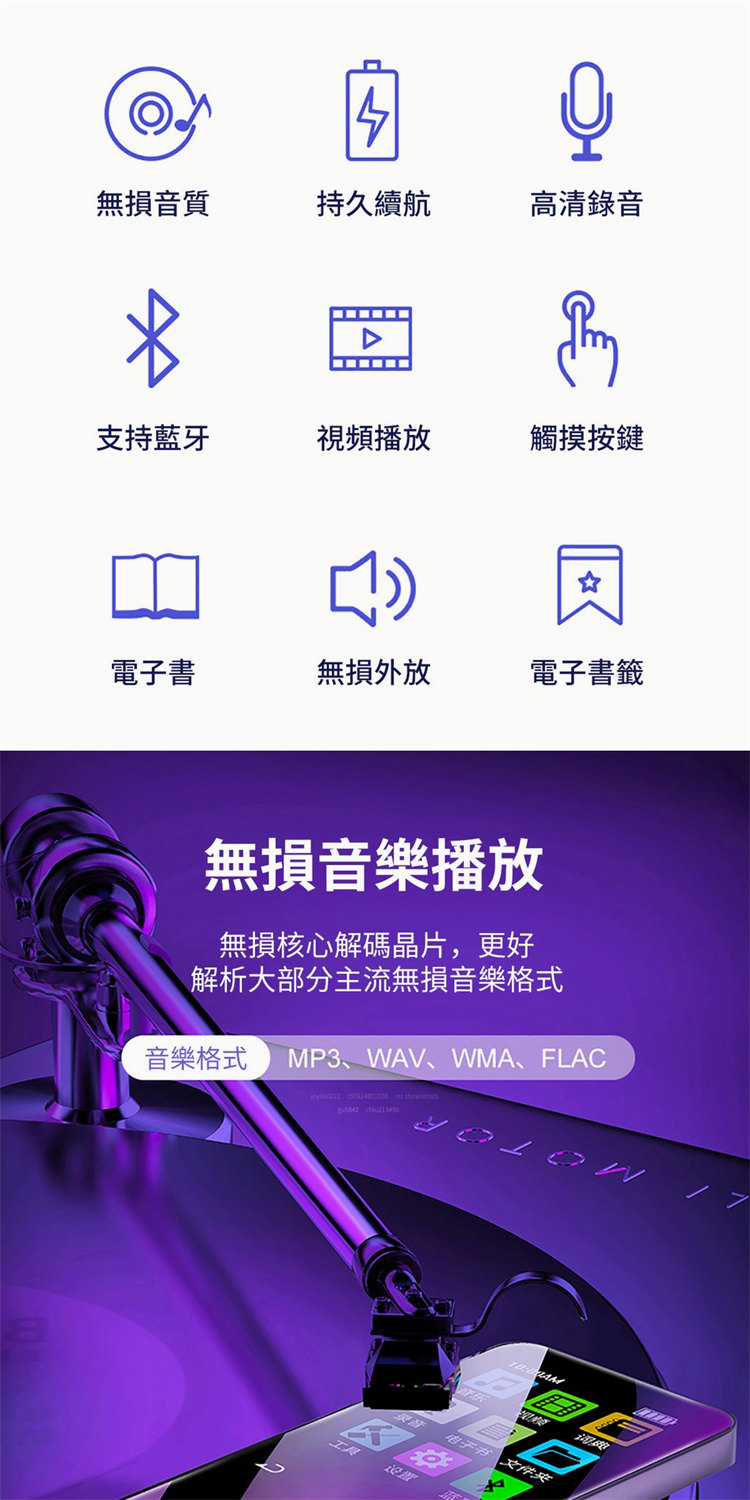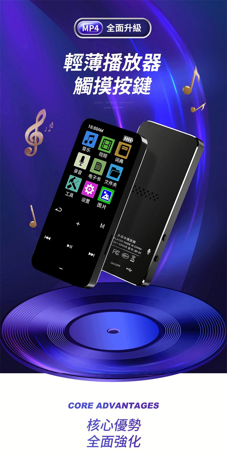 全功能旗艦級MP4播放器 | 內建16G記憶體 | 無損核心解碼晶片 | HIFI級澎湃聲場 | 高清錄音功能 | 支援無線藍芽 | 內置英文詞典 | 30小時長效續航