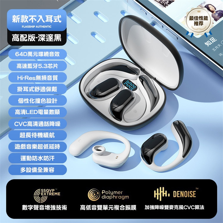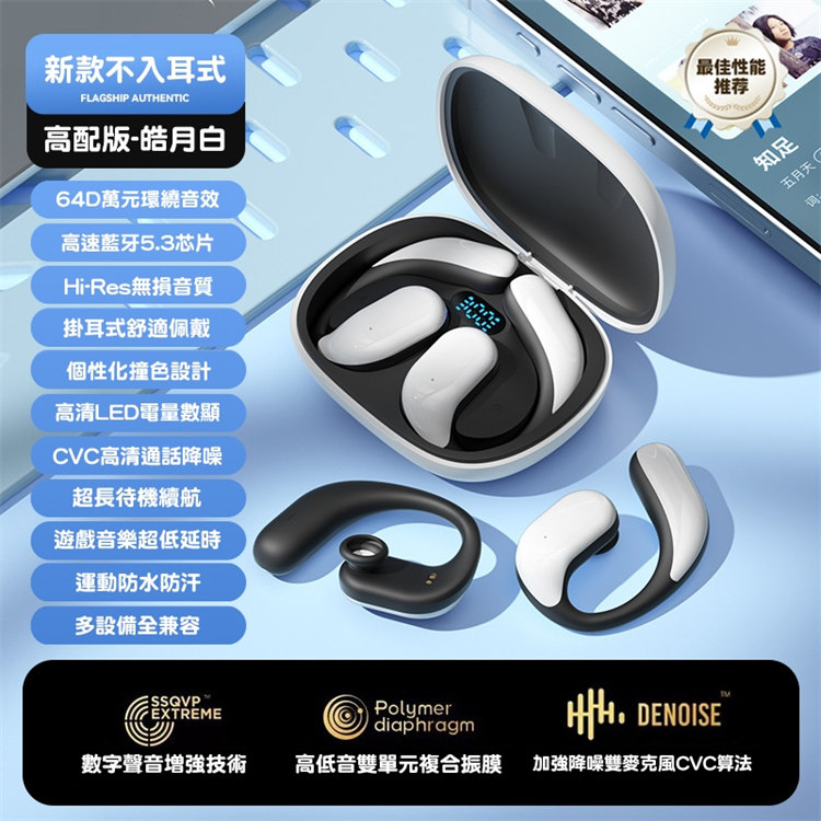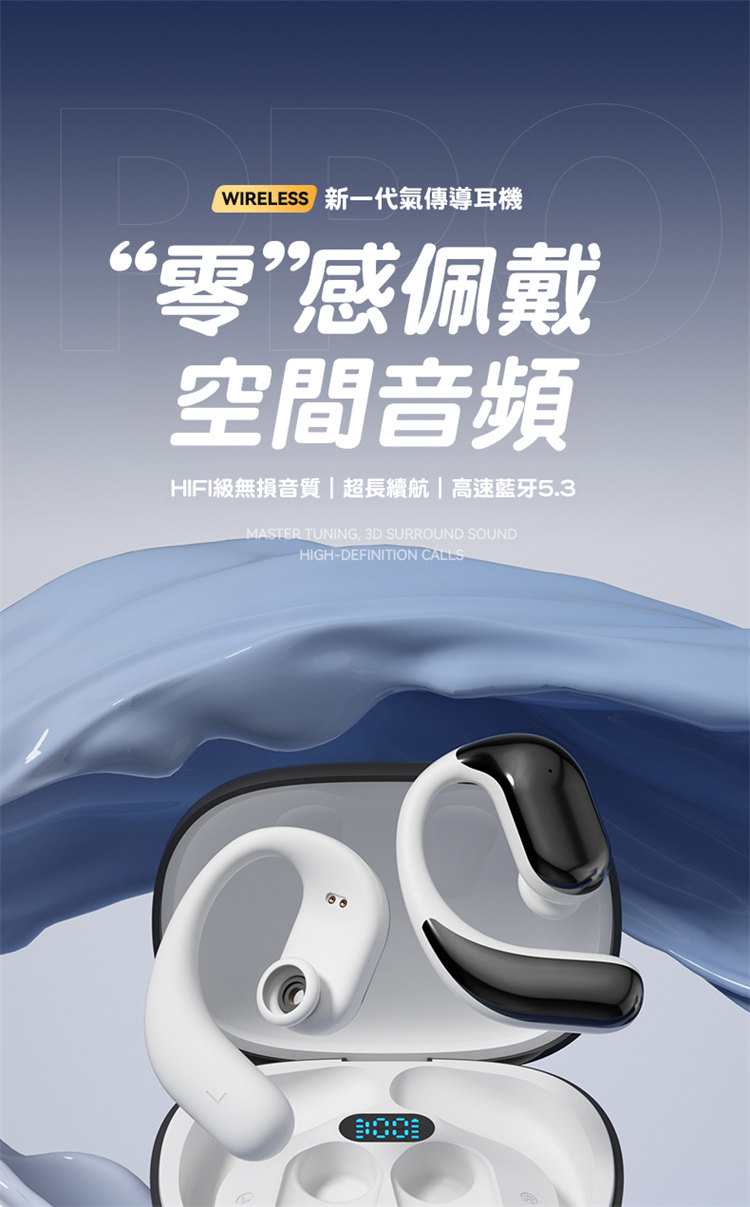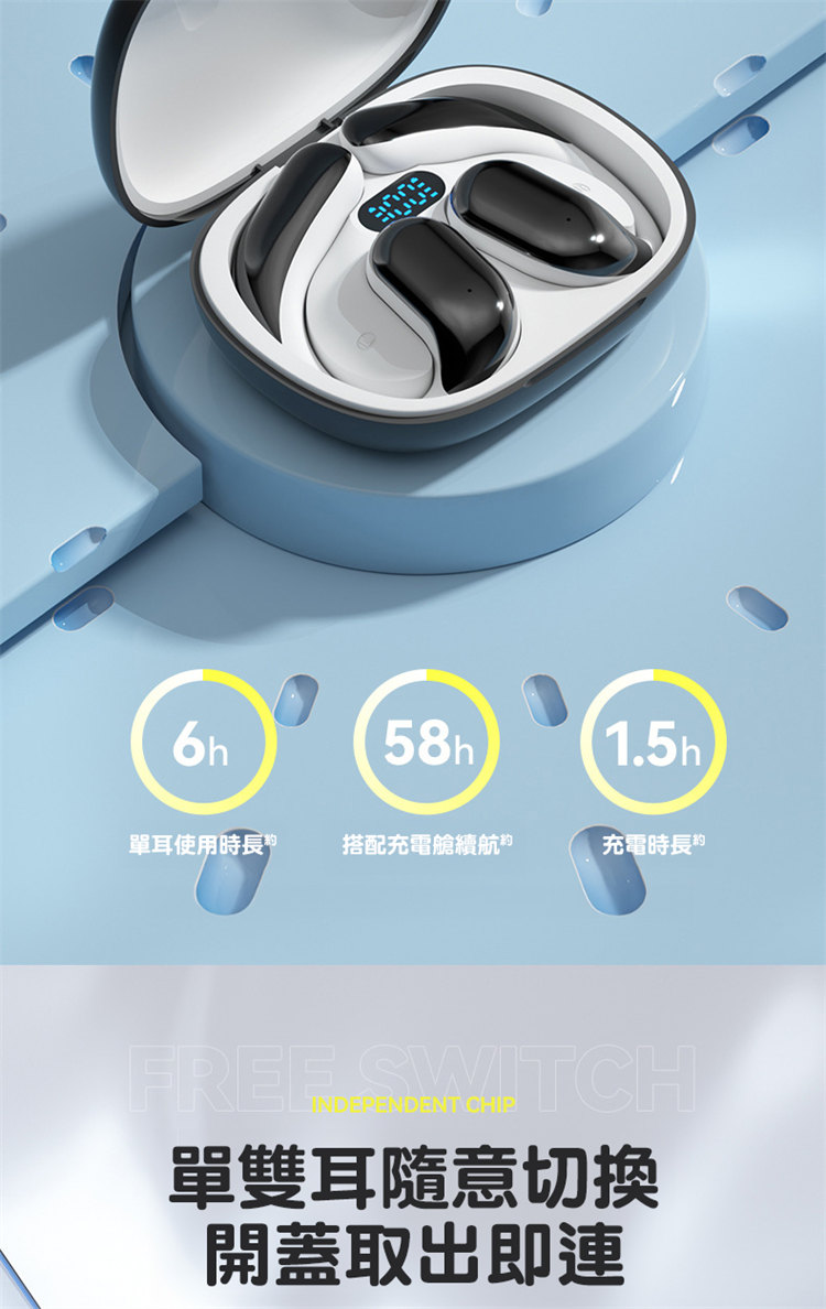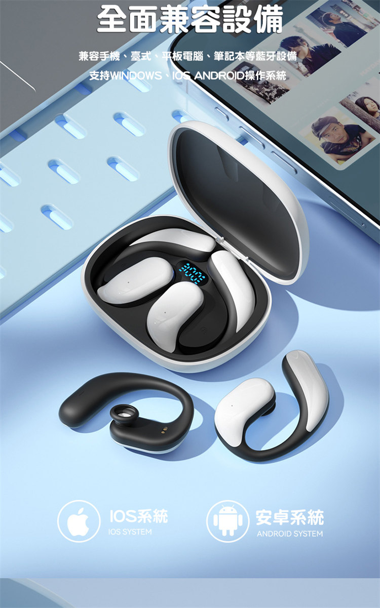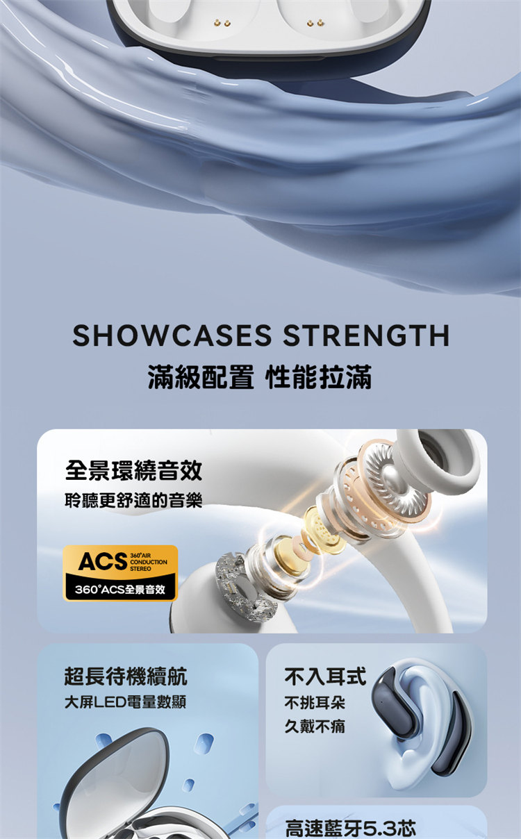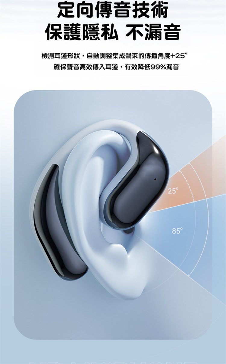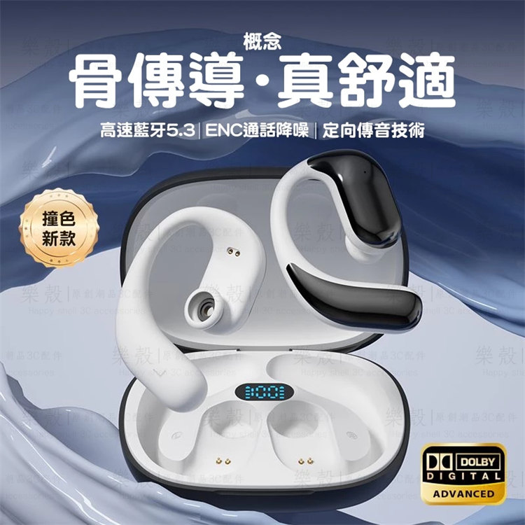骨氣傳導真無線藍牙耳機 | 不入耳更舒適 | 360ACS全景音效 | 定向傳音不漏音 | 無感掛耳佩戴 | LED電量顯示 | ENC智慧通話降噪 | 全設備兼容