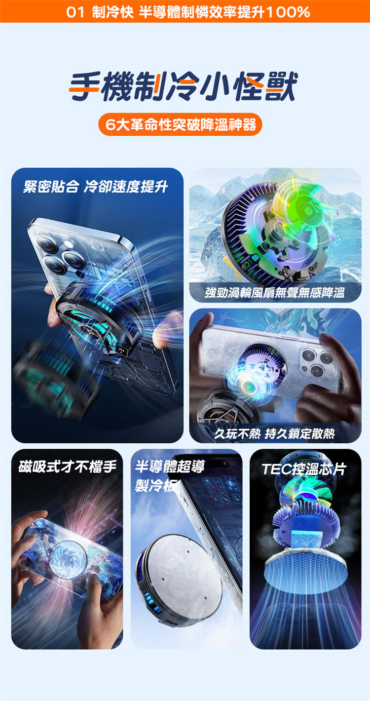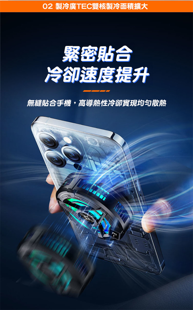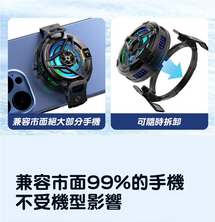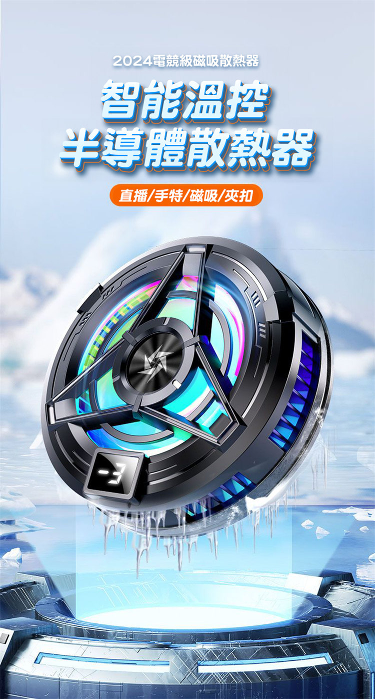 電競級全場景磁吸手機散熱器 | TEC雙核半導體超導製冷 | 溫度實時顯示 | 磁吸式真不擋手 | 強勁渦輪九葉風扇 | 智慧自適應溫控 | 超靜音無感