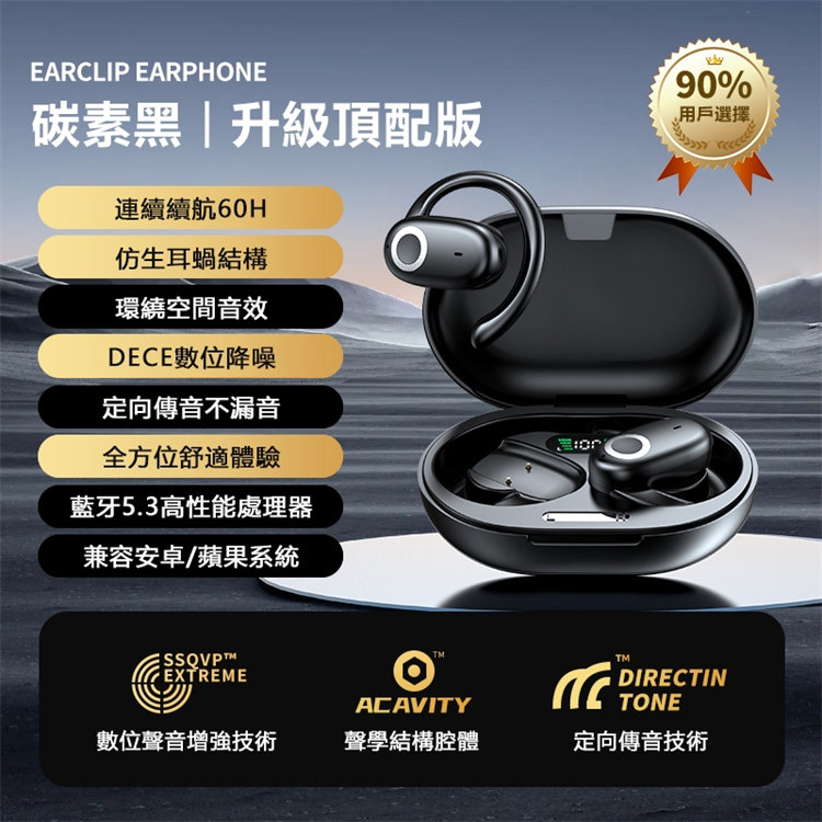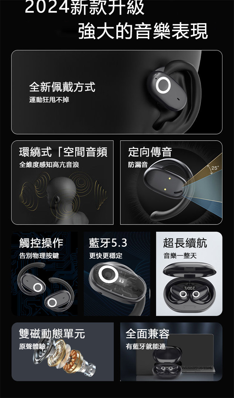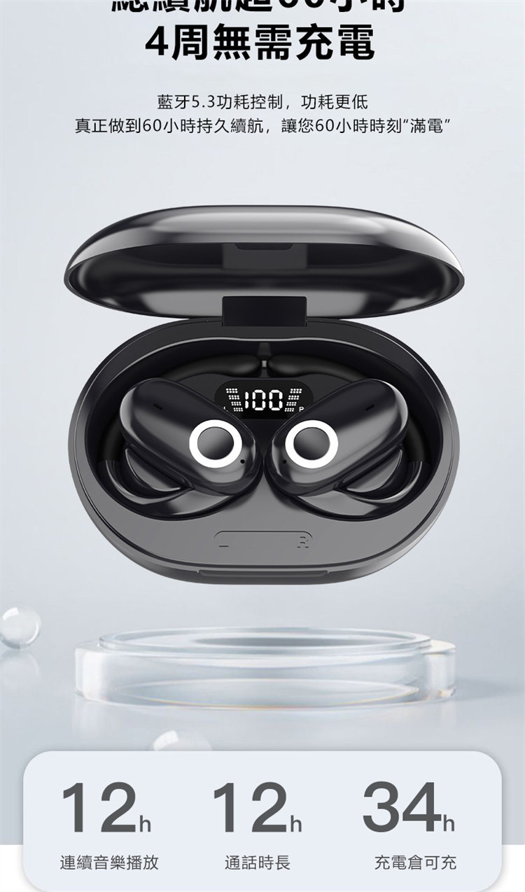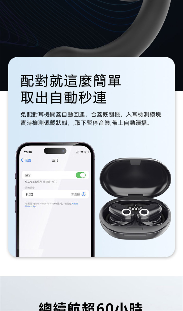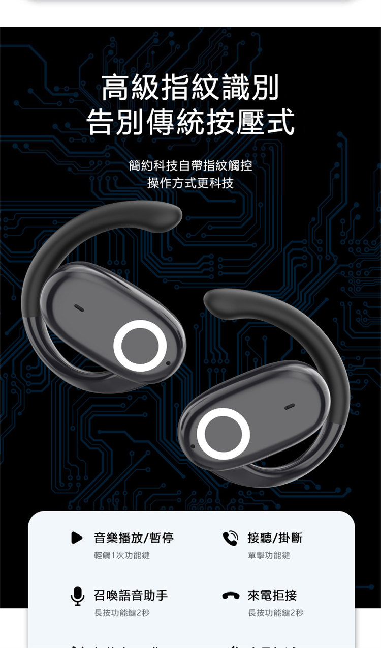 零重力掛耳式無線藍芽運動耳機 | 不入耳無脹痛無侵入感 | LIVE級全景環繞聲浪 | 脈衝集束定向傳音 | 雙重降噪海綿消噪科技 | 智慧指紋觸控