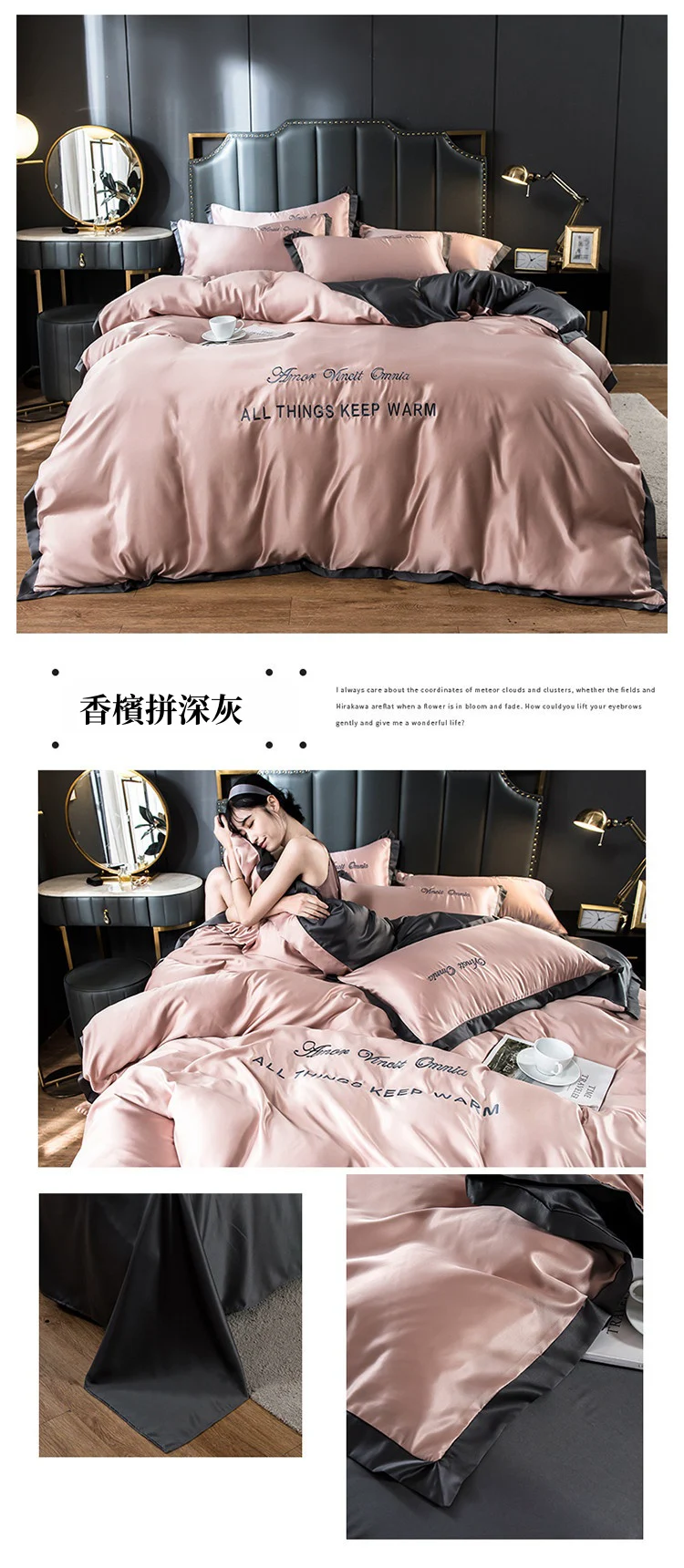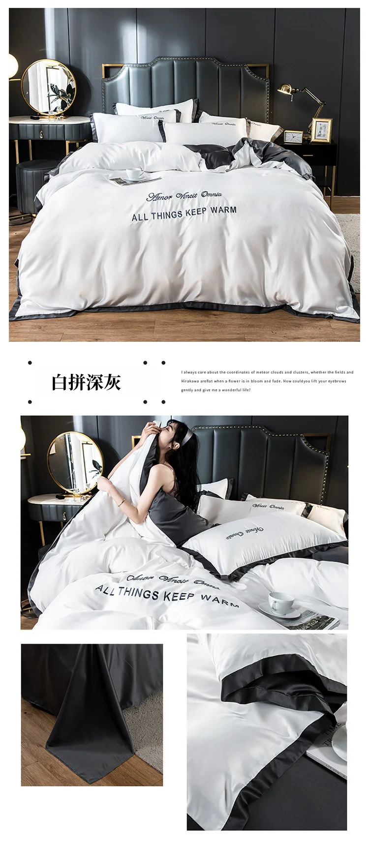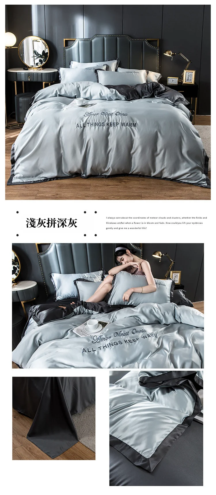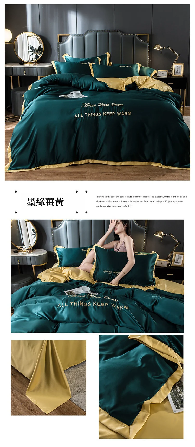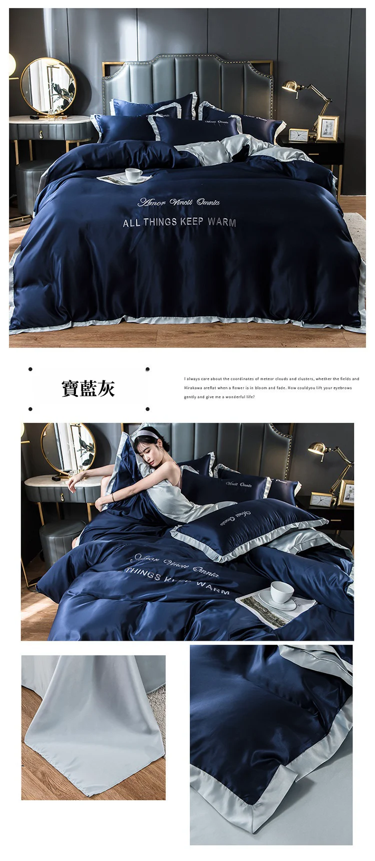 奢級五星酒店水洗天絲四件套組 | 可水洗天絲涼而不冰 | 觸膚絲滑清爽裸感 | 健康活性印染工藝 | 重工英式刺繡 | 冰絲床單床包背包枕套四件組