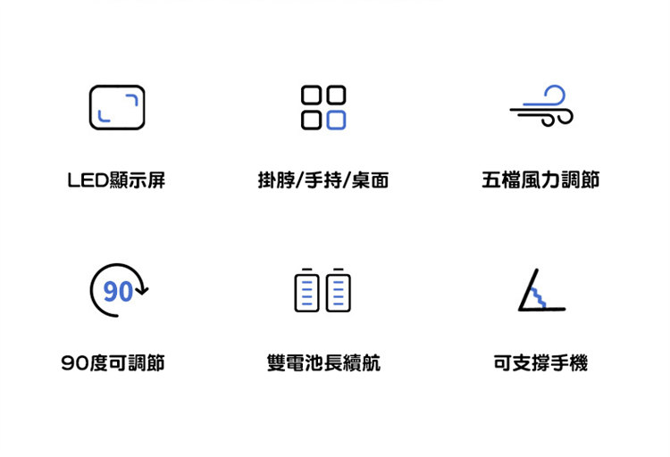 航母級續航USB手持小風扇 | LED實時電量顯示 | 超長續航暢吹一整天 | 五檔風力調節 | 掛脖手持桌式多用 | 靜音馬達不打擾 | 90度出風可調
