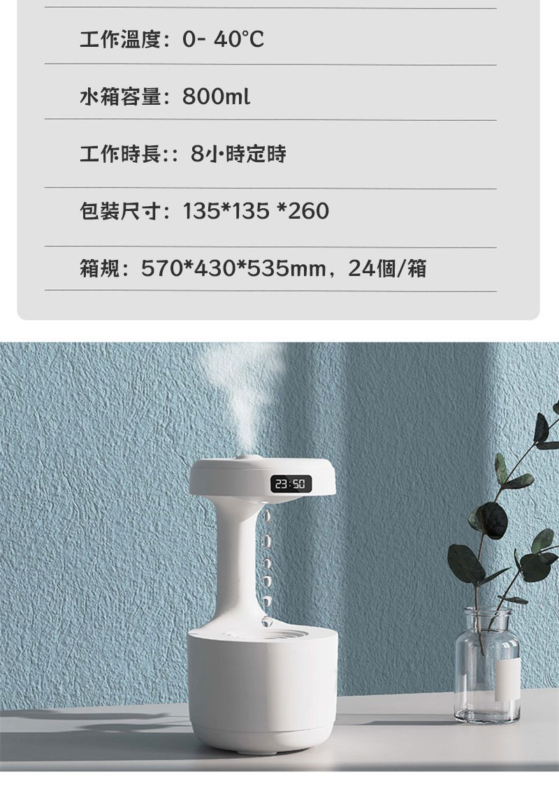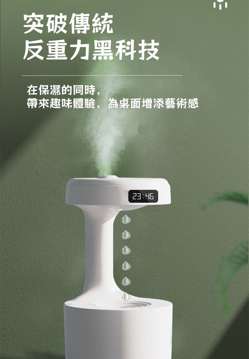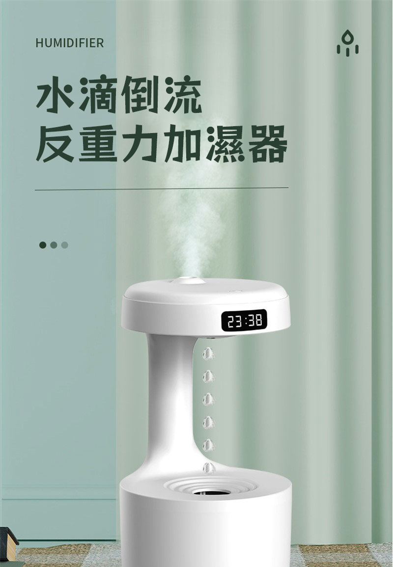 你沒見過的反重力場加濕器水氧機 | 超酷水滴倒流黑科技 | 空調伴侶細膩補水 | 奈米級超音波噴霧 | 智慧防乾燒設計 | LED時間熒幕 | 靜音不打擾