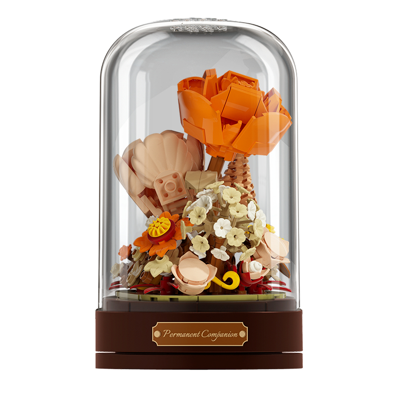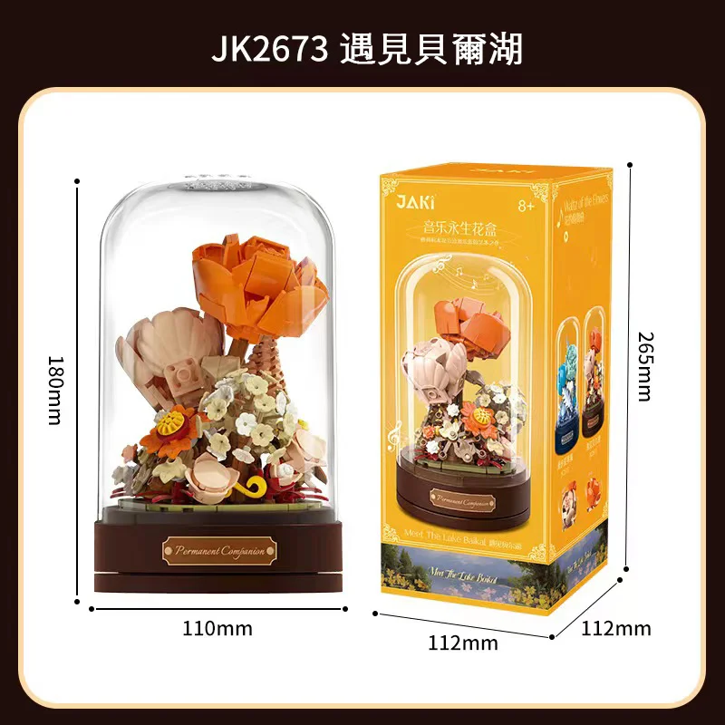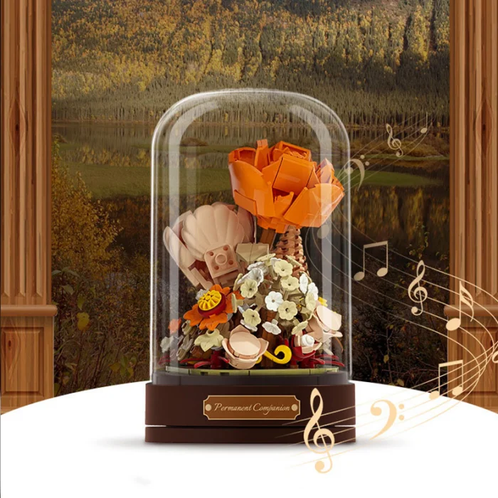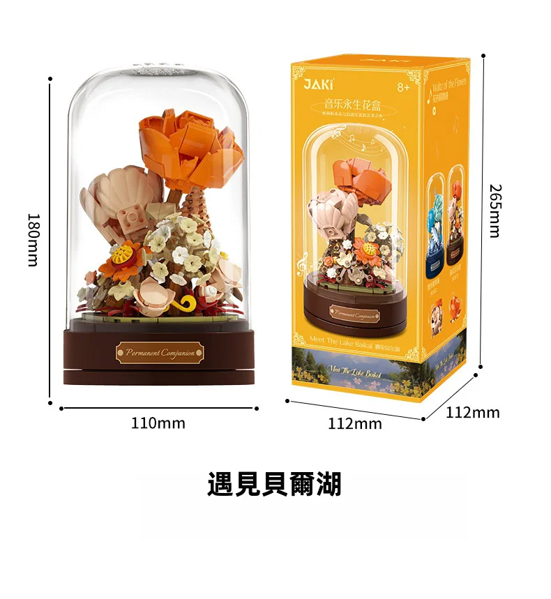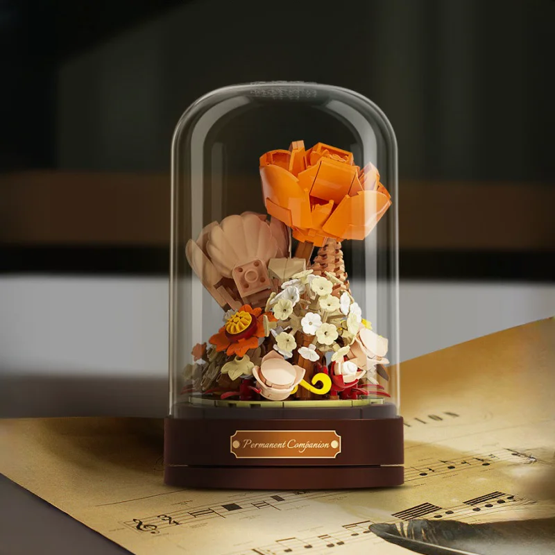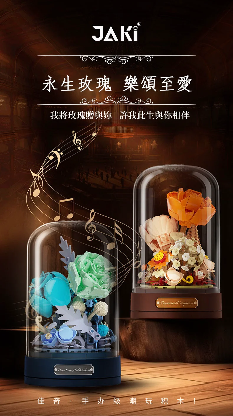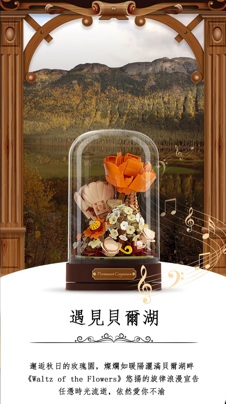 漫步愛琴海 | 永恆積木之花水晶音樂盒 | 花藝大師浪漫花語 | 品質機芯高級音質 | 360高透防塵罩 | 收到超感動浪漫永生積木玫瑰水晶罩音樂盒