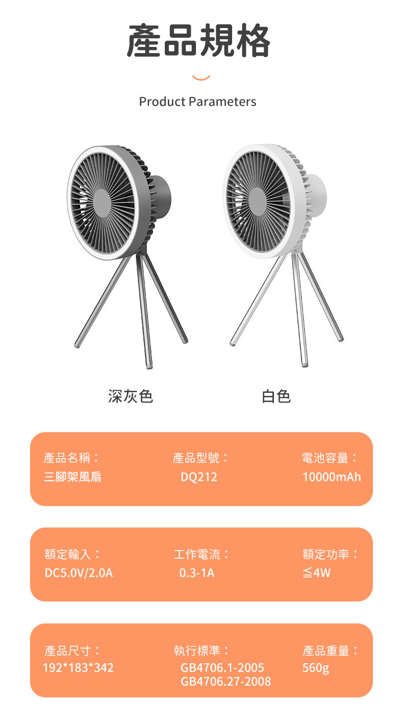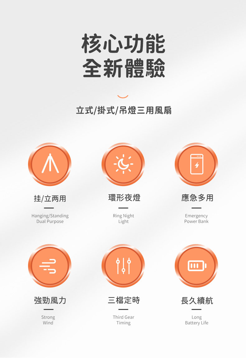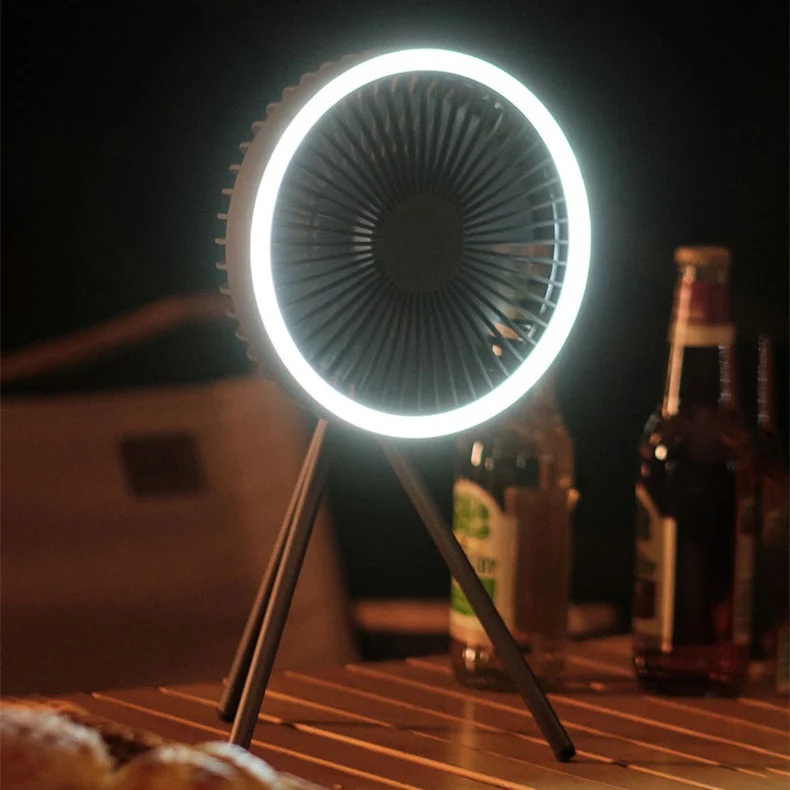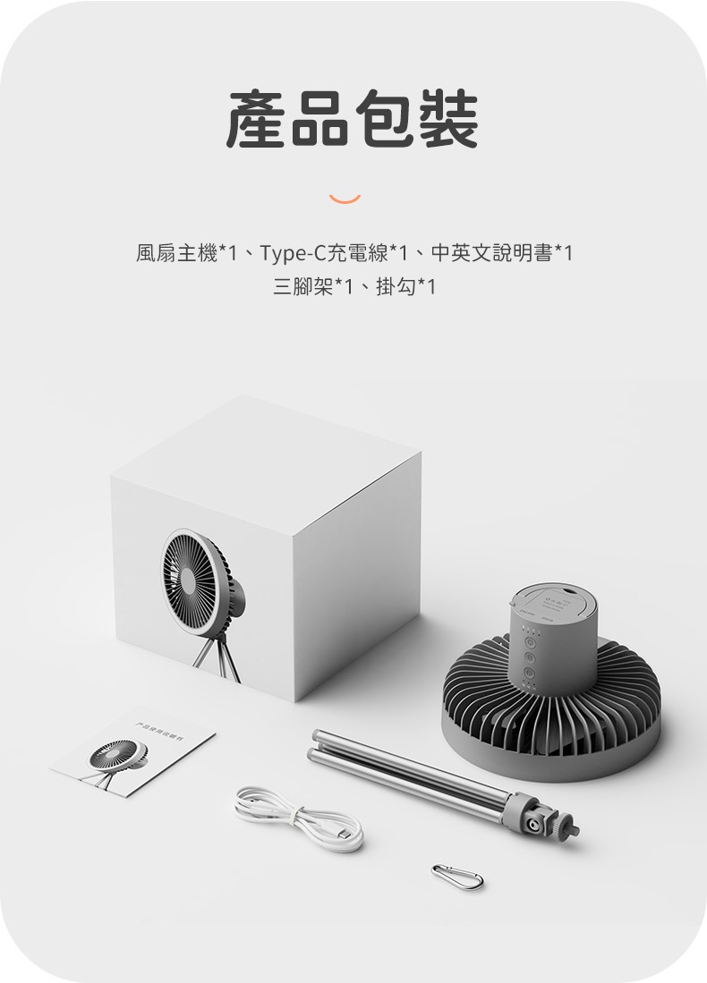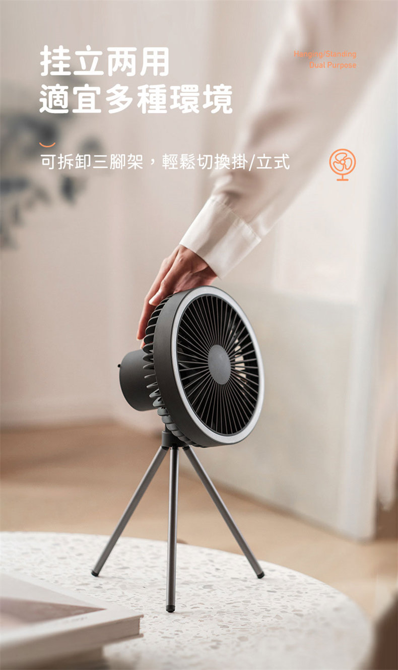 奢級勁涼全場景無線露營風扇 | 航母級27H續航 | 桌扇吊扇夜燈三合一 | 三檔亮度環形夜燈 | 穩固三角架支撐 | 三檔定時功能 | 超靜音不打擾