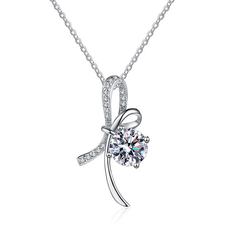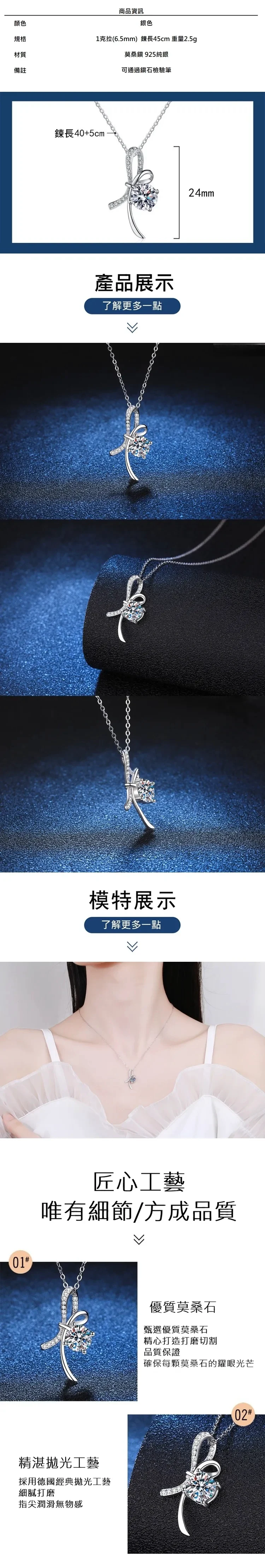 戀心蝴蝶結一克拉莫桑鑽項鍊 | 可過測鑽筆 | 附GRA認證證書 | 3EX級切工 | S925純銀 | 手工精緻拋光 | 浪漫可愛送女生禮物真莫桑鑽石女生項鍊