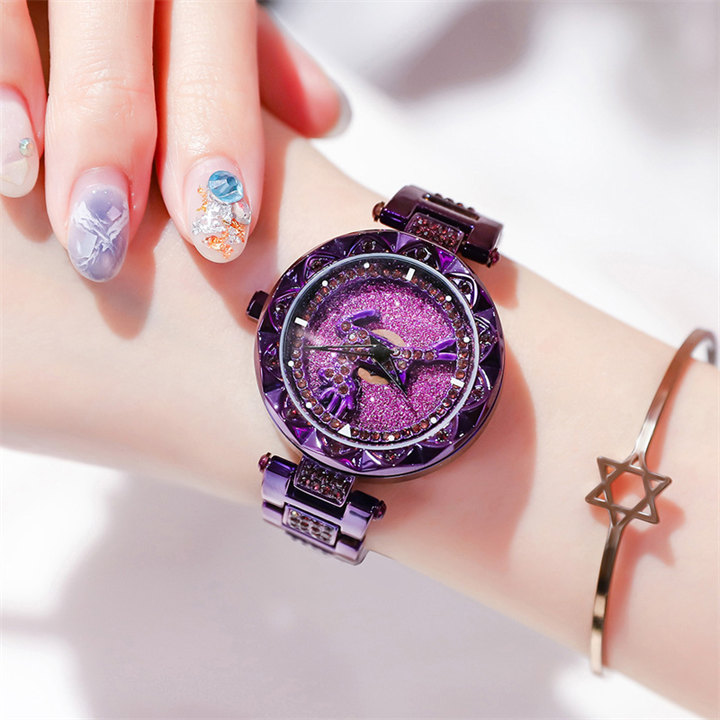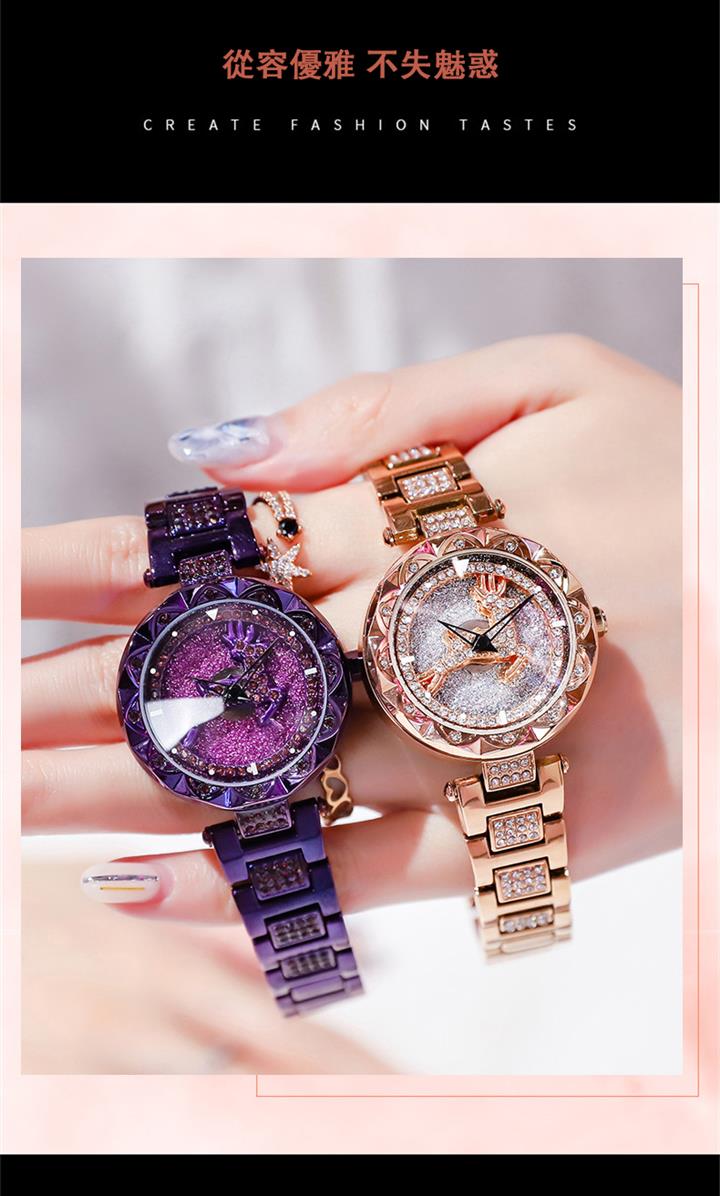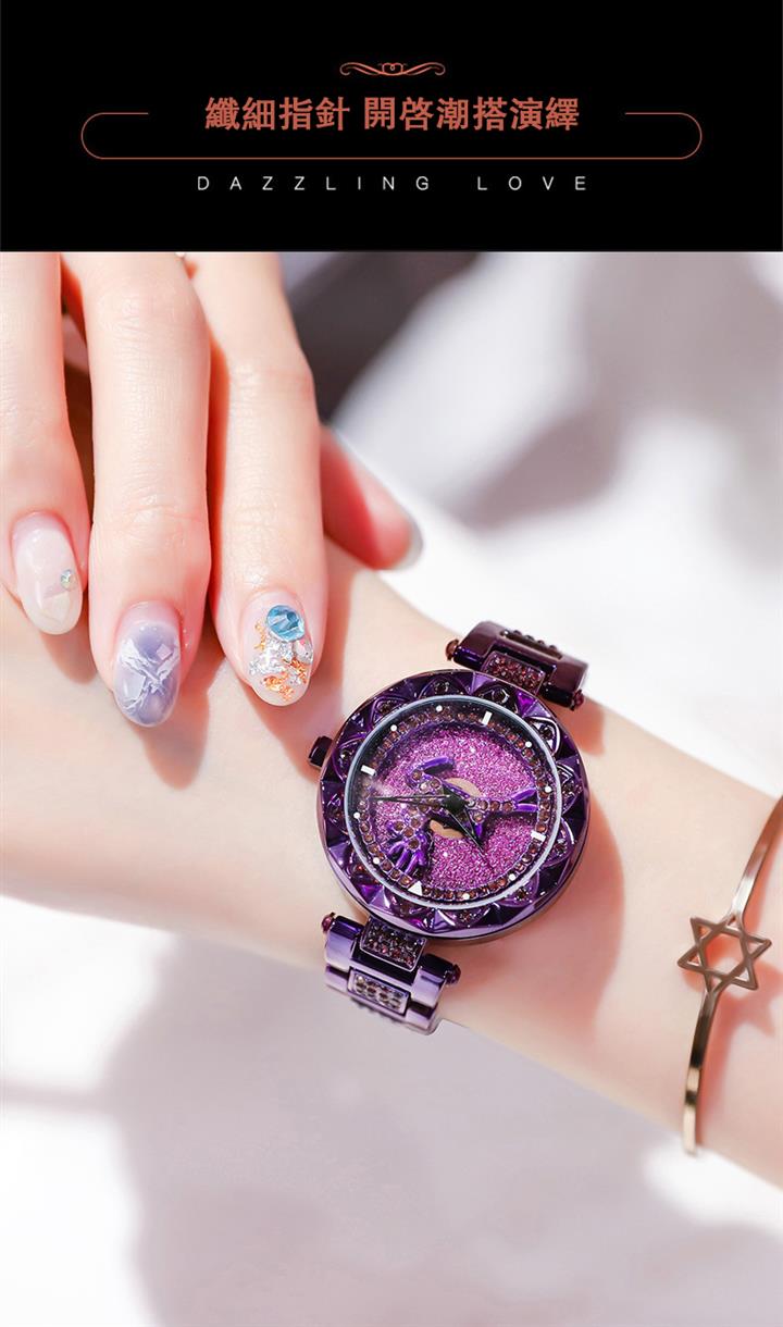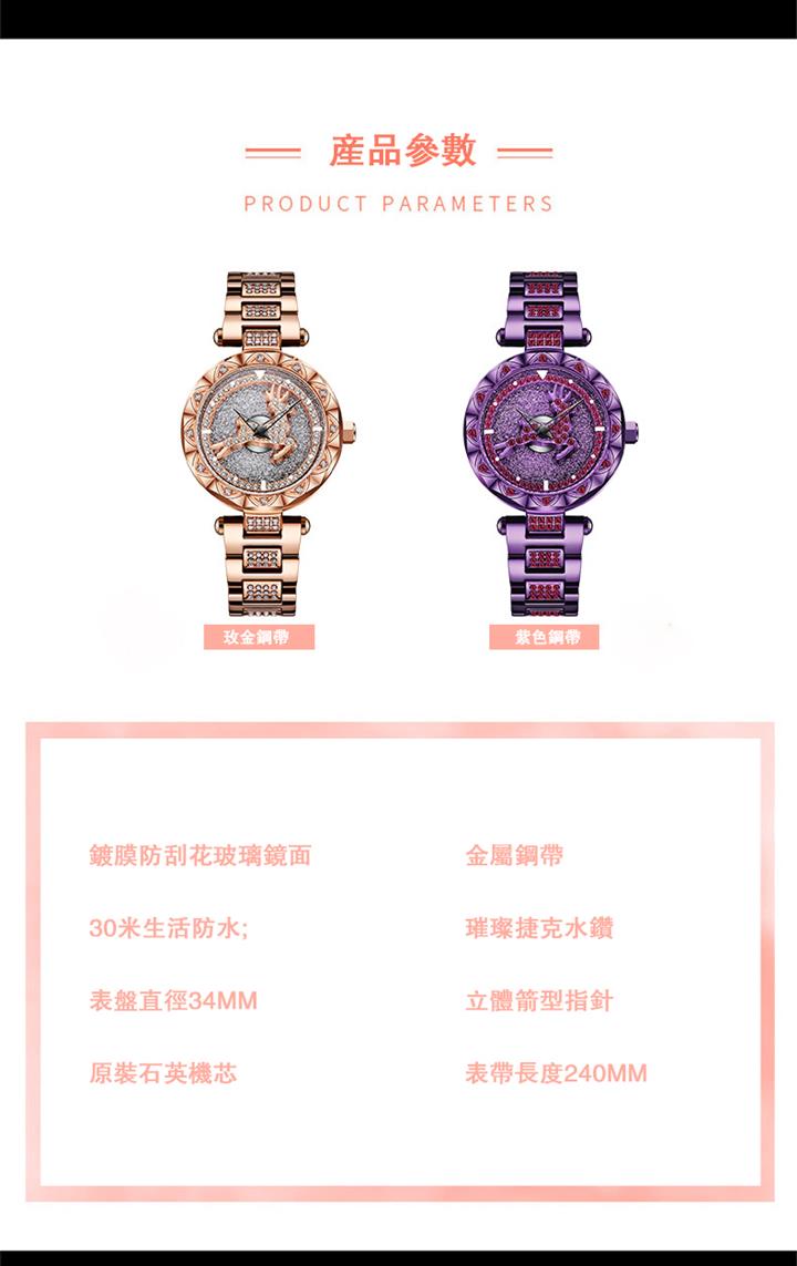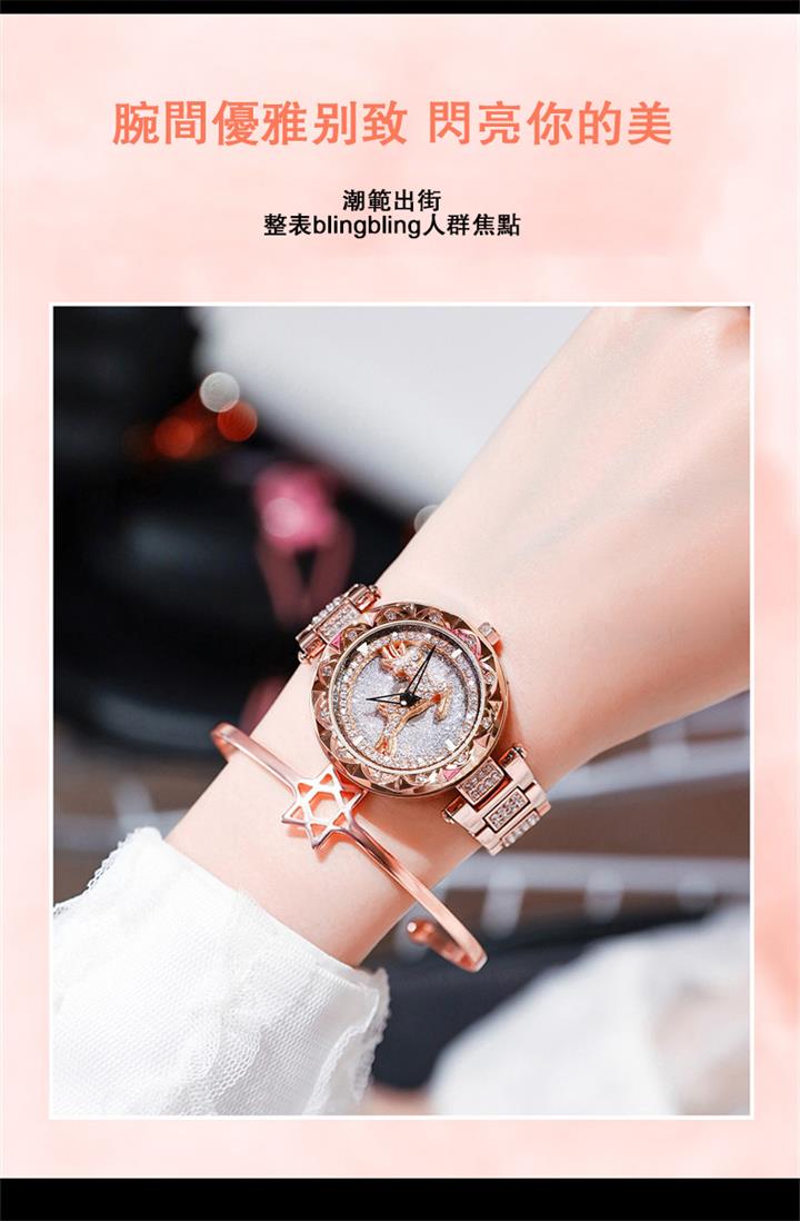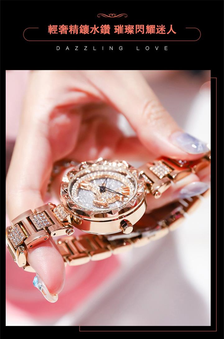 一鹿有妳炫目滿鑽星空手錶 | 旋轉麋鹿開運錶盤 | 鍍膜耐磨水晶表鏡 | 實心鑲鑽合金錶帶 | 時來運轉浪漫麋鹿鑲鑽超美女士石英手錶