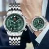 男錶・壯志凌雲 | 可旋式滑尺錶圈 | 六針計時錶盤 | 日本三眼機芯 | 七珠實心鋼帶 | 日曆視窗 | 30米防水 | 強視夜光 | MF高級男士飛行手錶