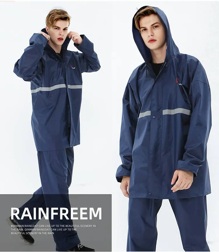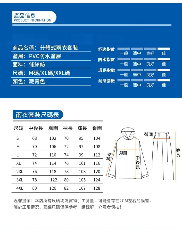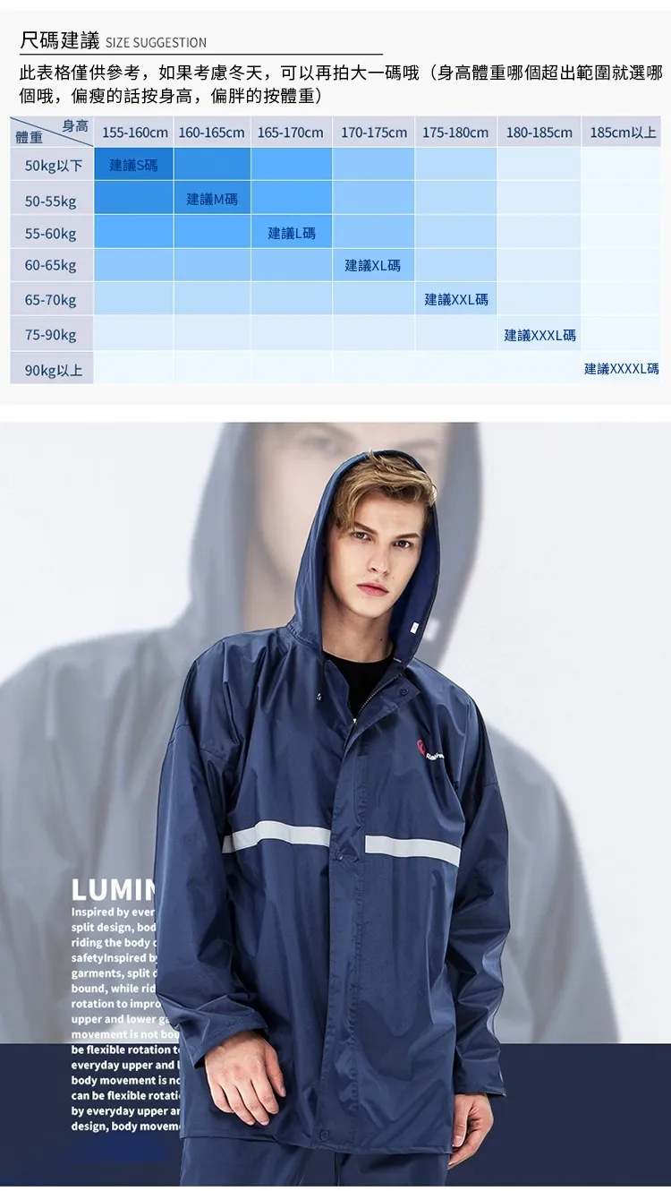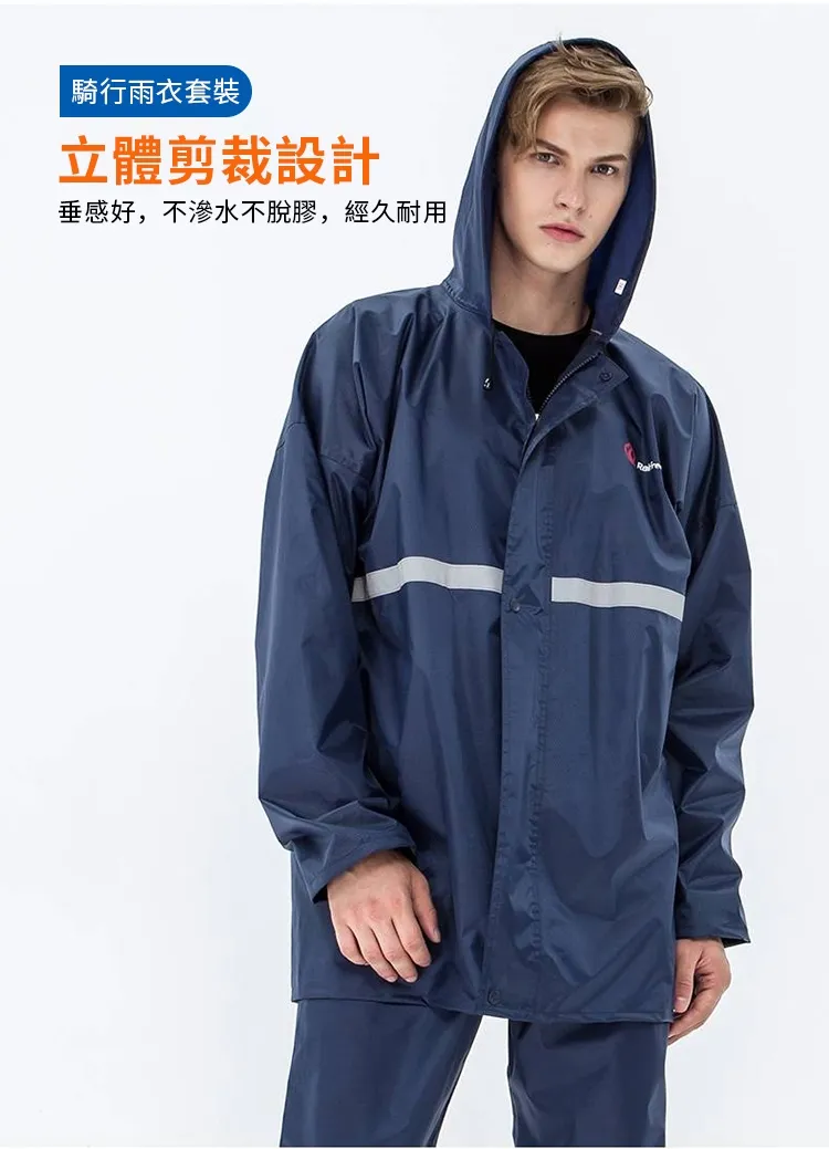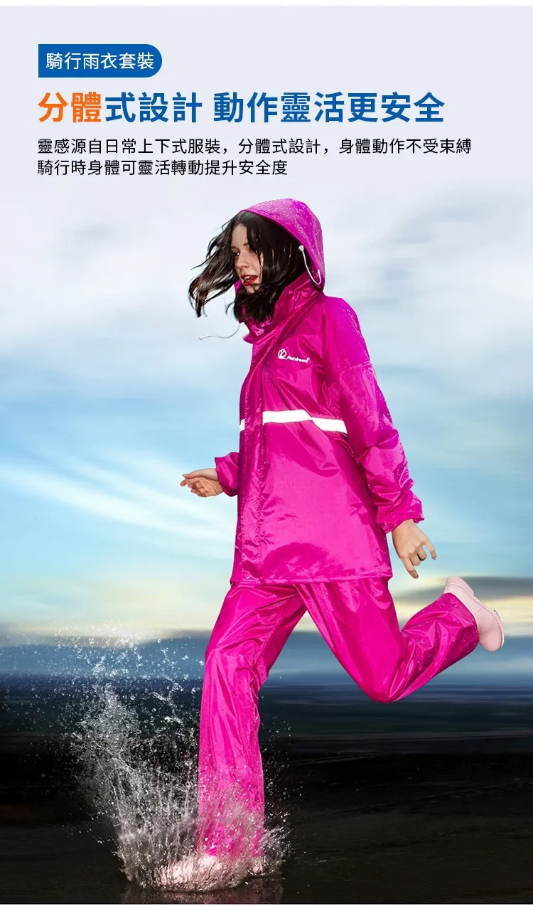 暴雨級衝鋒機能雨衣 | 兩件式衣+褲套組 | 190T黑科技防水面料 | 立體剪裁無束縛 | 精緻門襟無滲水 | 高亮反光條 | 分體式徒步騎行機車雨衣