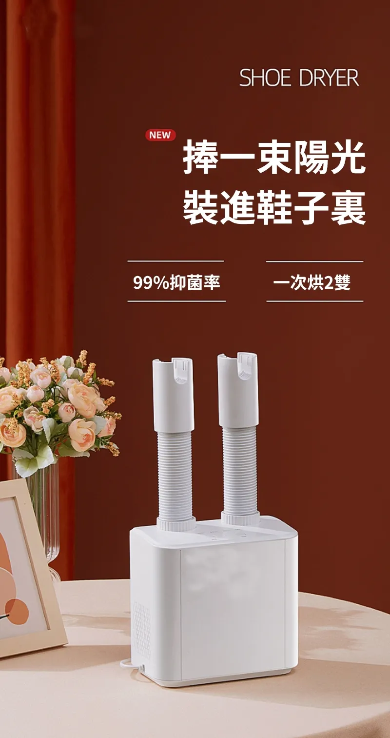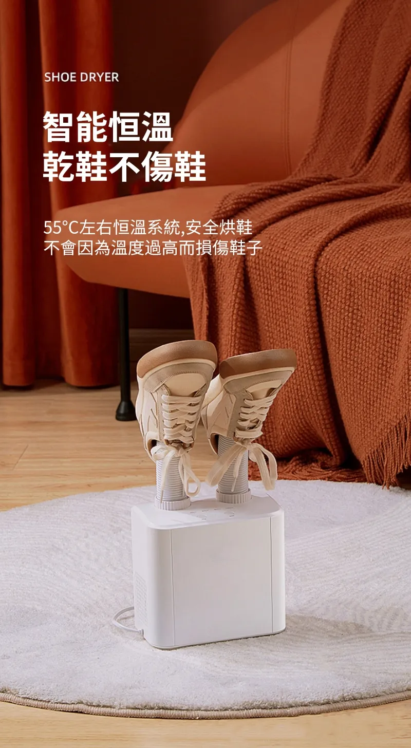 護理級全功能抑菌除臭快速烘鞋機 | 智慧55℃恆溫不傷鞋 | 99.99%抑菌除臭 | 雙U出風一次烘兩雙 | 暖風熱迴圈快烘 | 定時功能更方便 | 貼心禮物