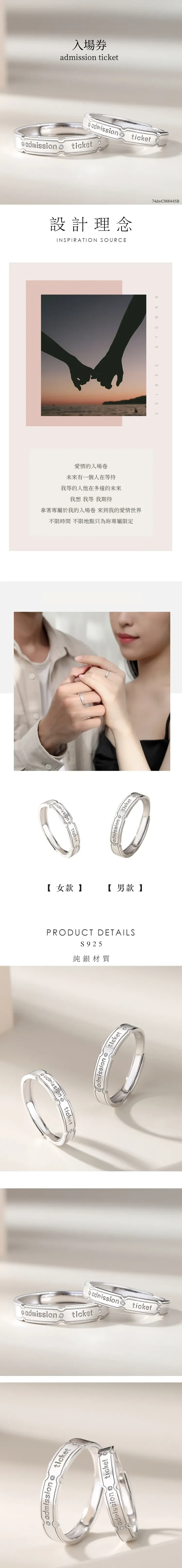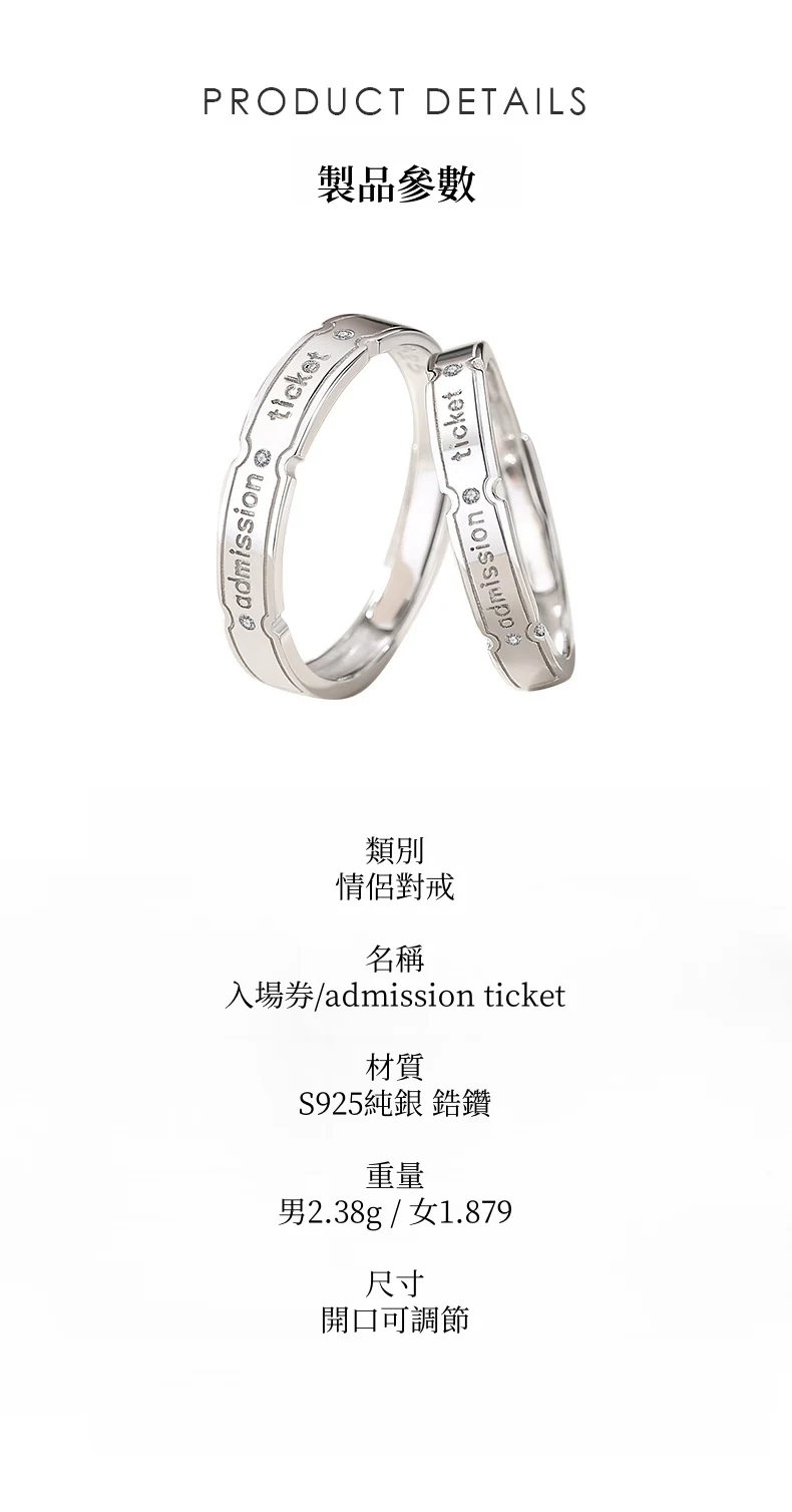 admission ticket | 愛的入場券 | 925純銀鑲鑽 | 原創自製專屬你我的愛情入場券純銀男女戒指情侶對戒